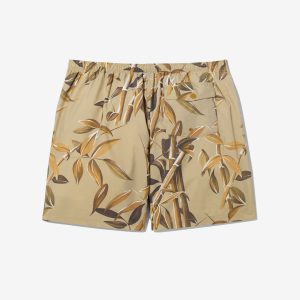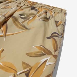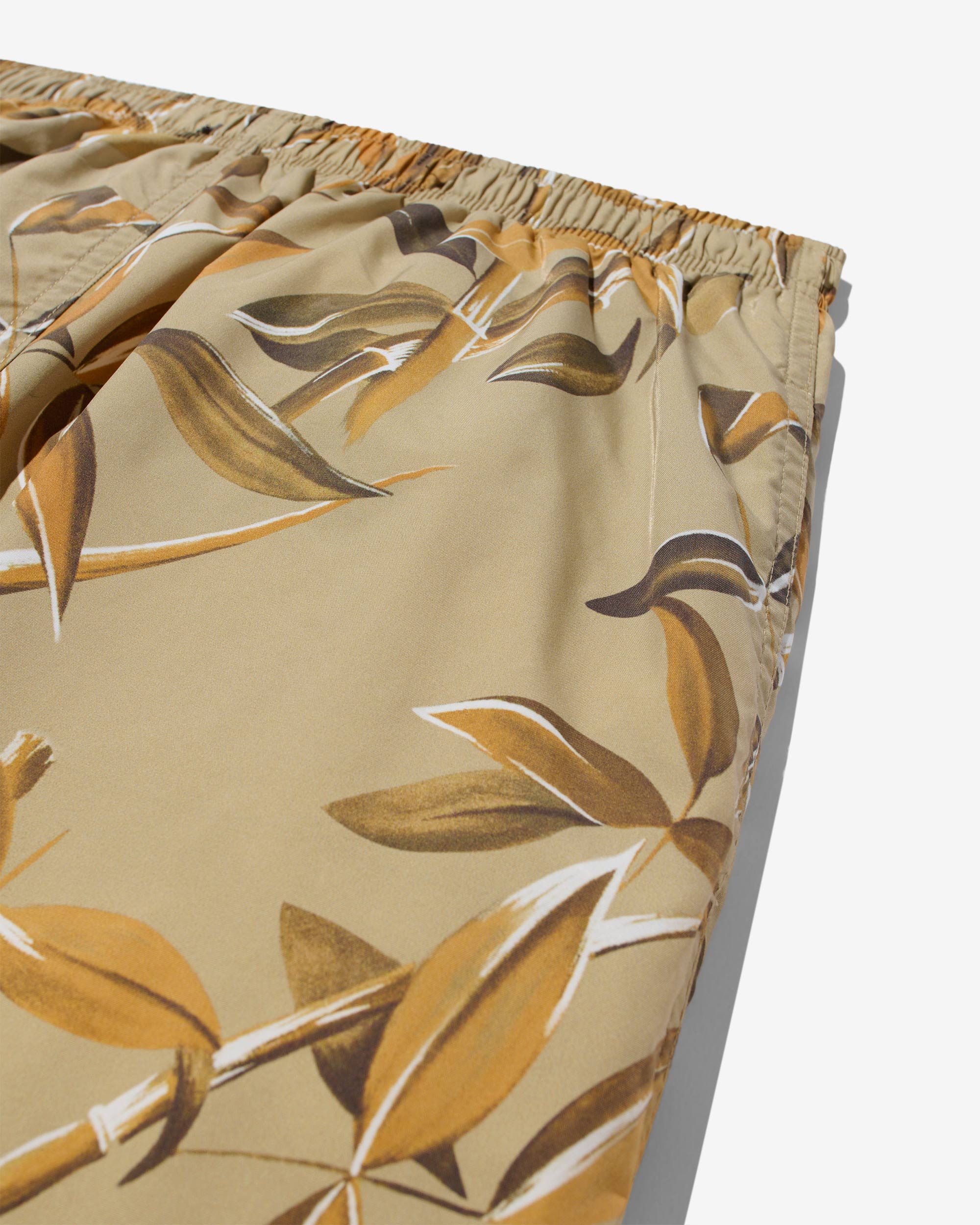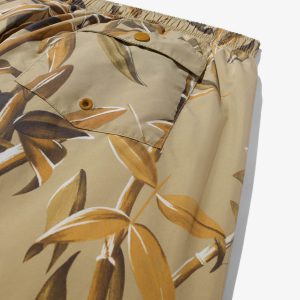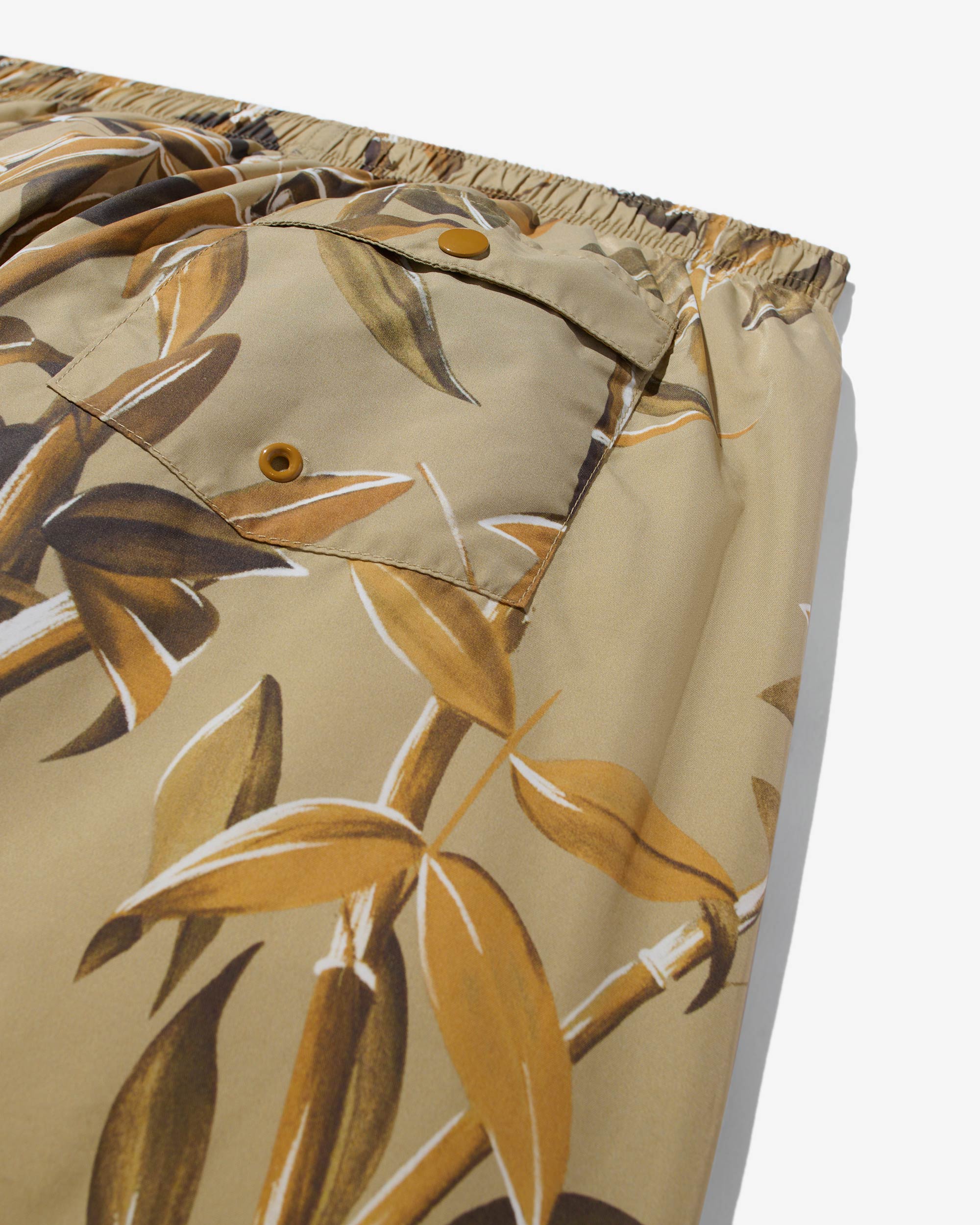 Made in Portugal. 100% crinkle nylon with nylon mesh liner. Elastic drawstring waist. On-seam front pockets. Flap back pocket with snap closure and drain vent. Final sale