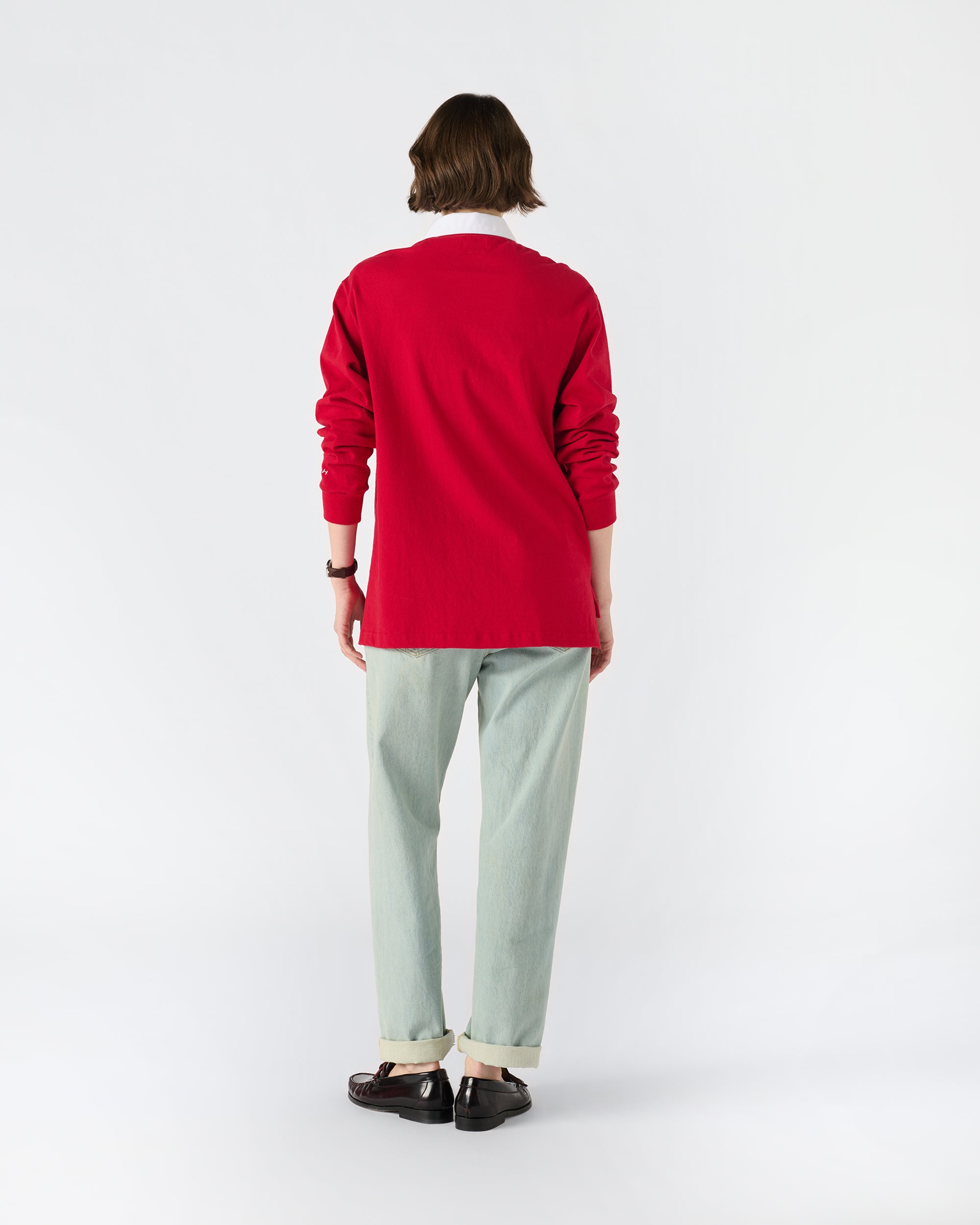 Made in Canada. 100% cotton. 8.0 oz Practice Cloth. Rib knit collar and cuffs. Side vents and drop tail hem. Embroidered logo above cuff.Â