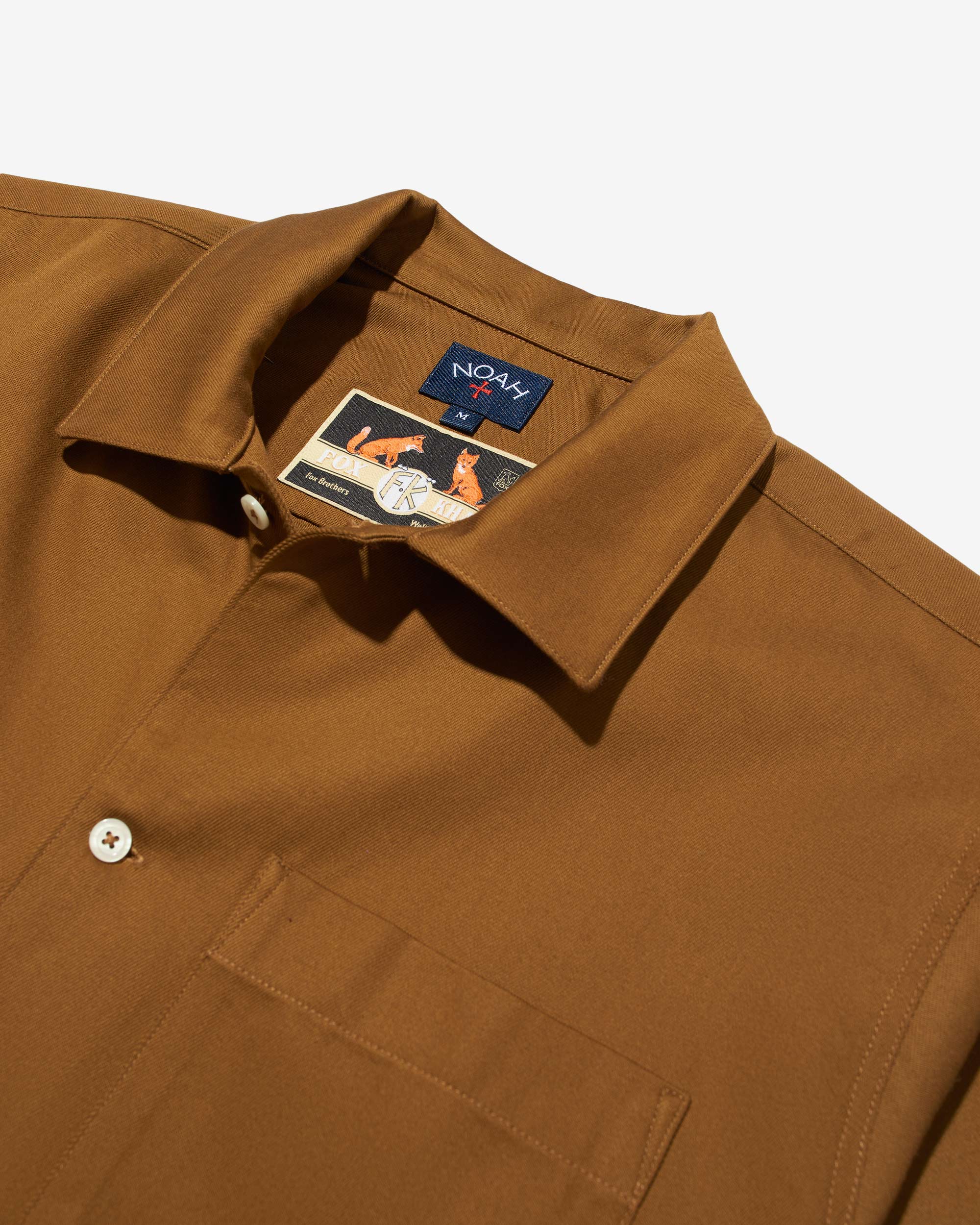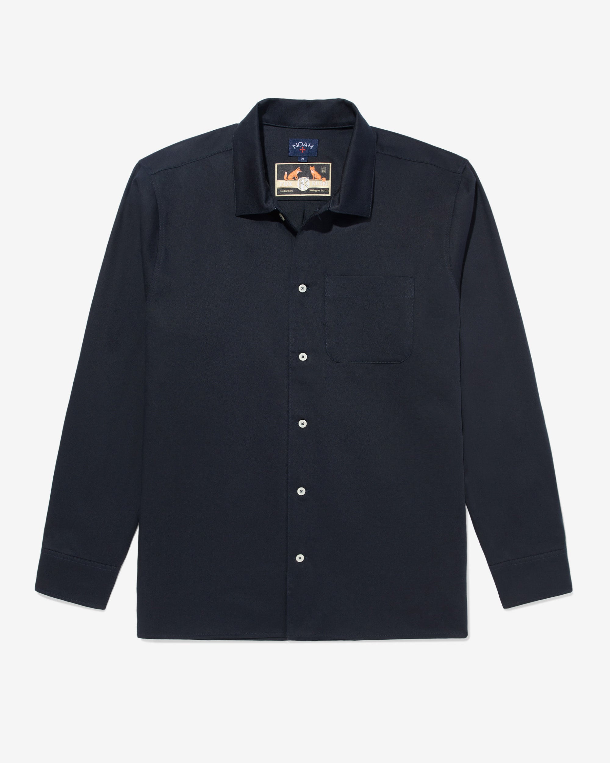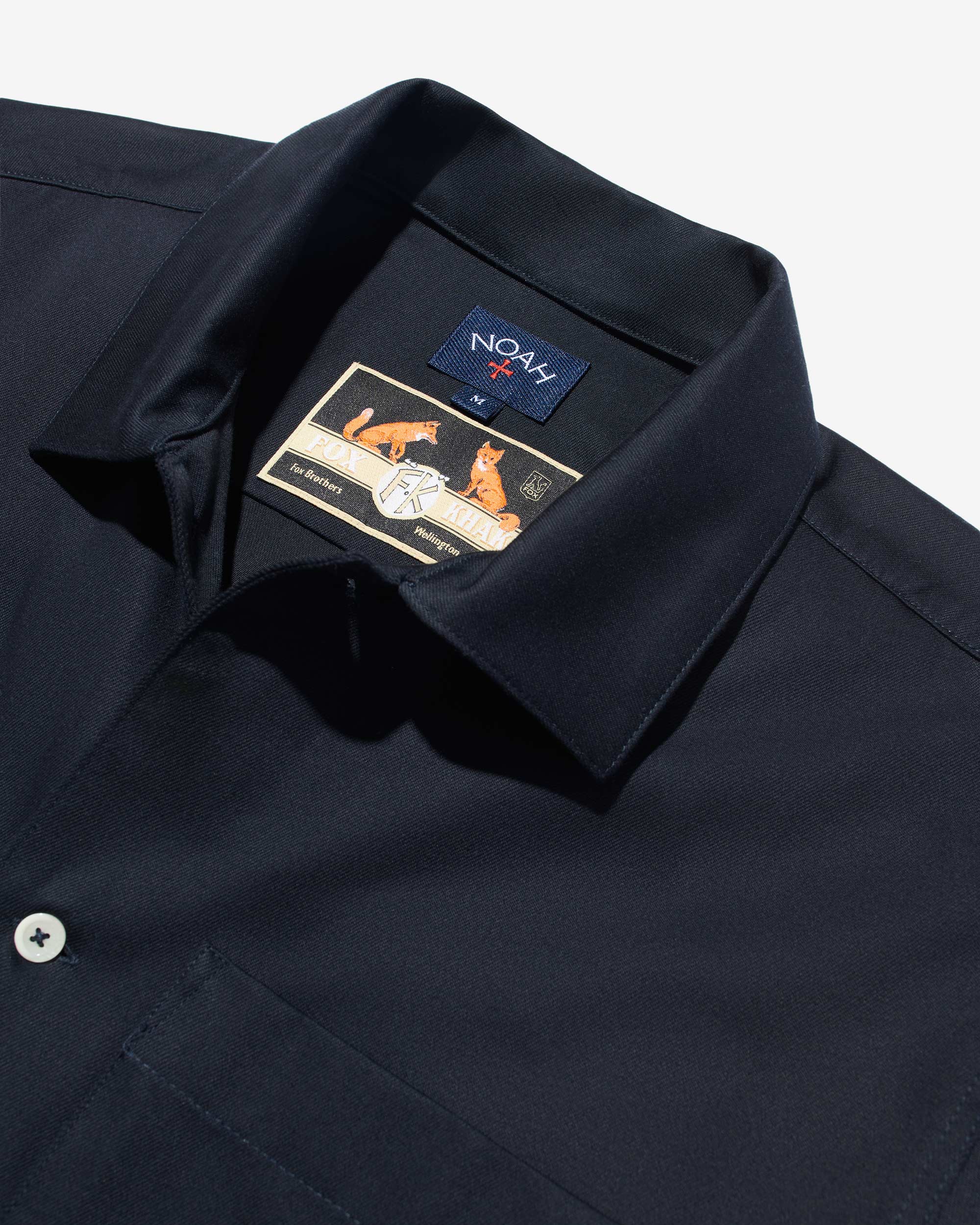 Made in Portugal. 100% cotton twill by Fox Brothers. Full button closure with lapel collar. chest pocket and button cuffs. Final sale.Â