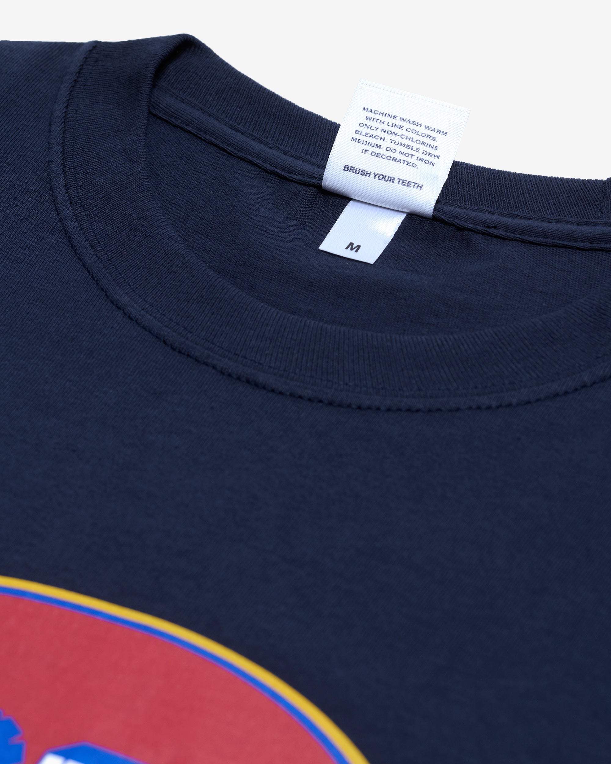 Made in Honduras. printed in USA. 100% cotton. Neil is 6’1 and wearing size M.