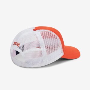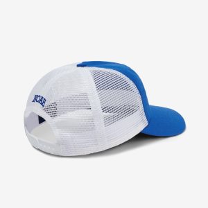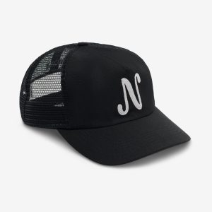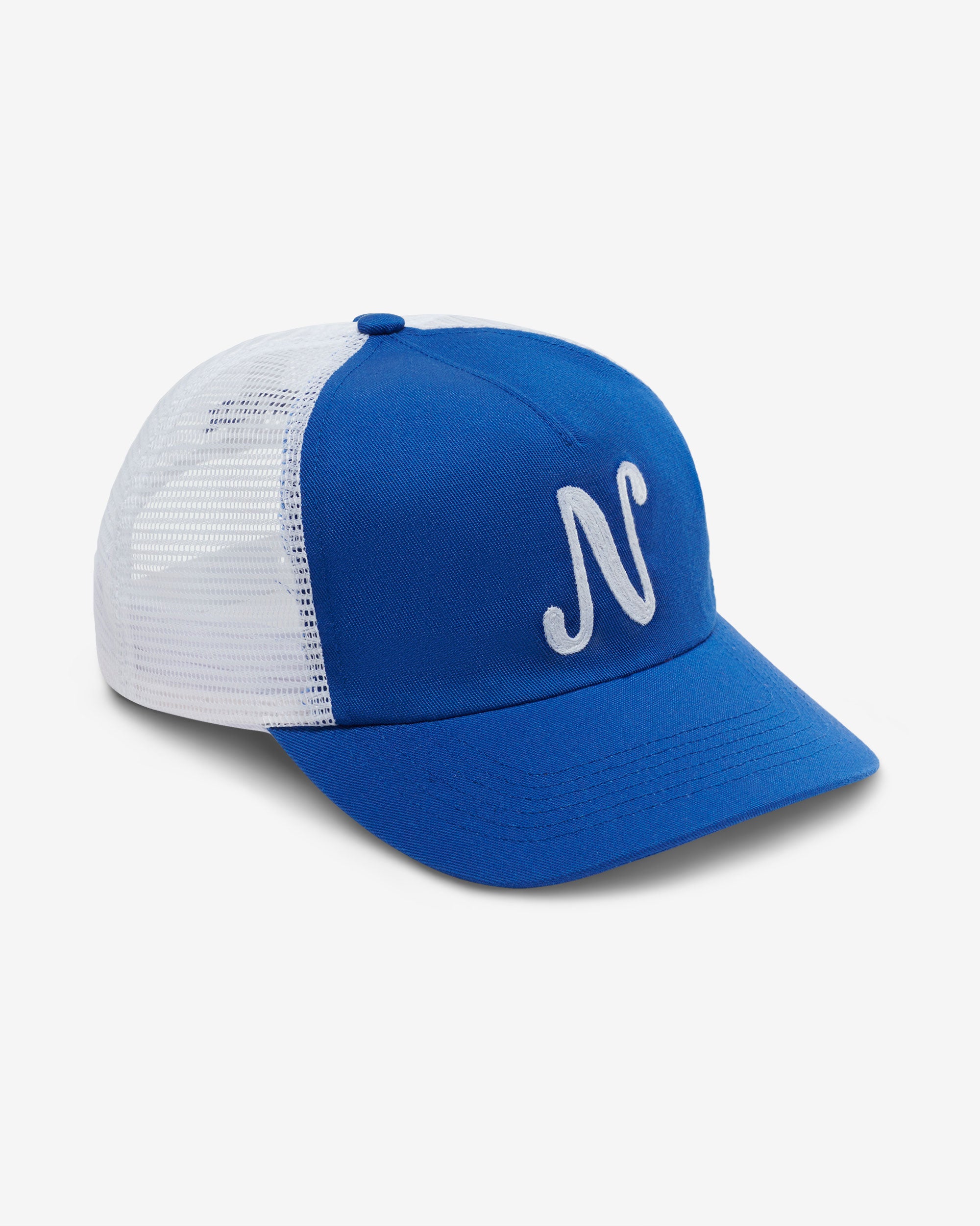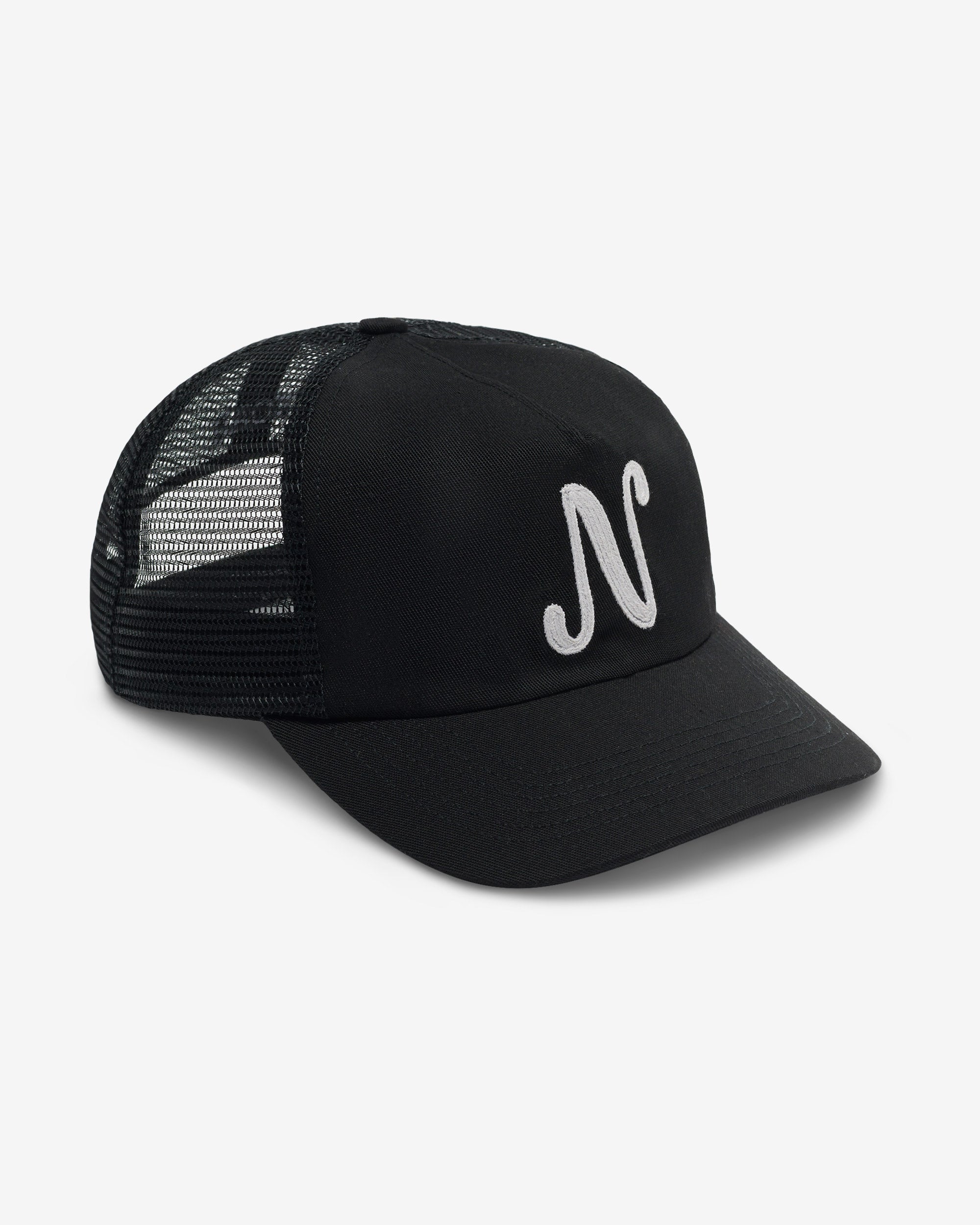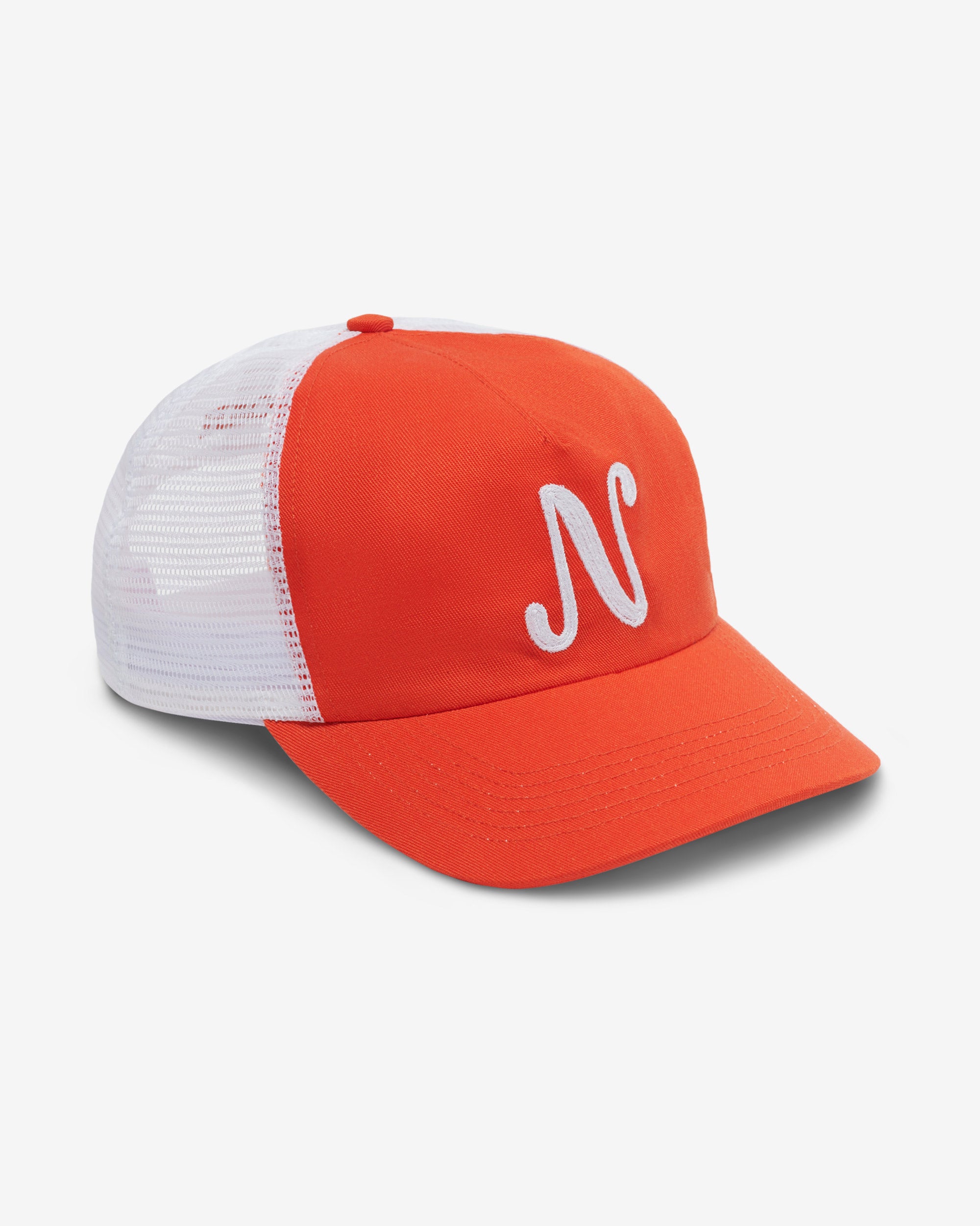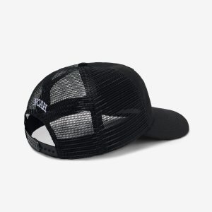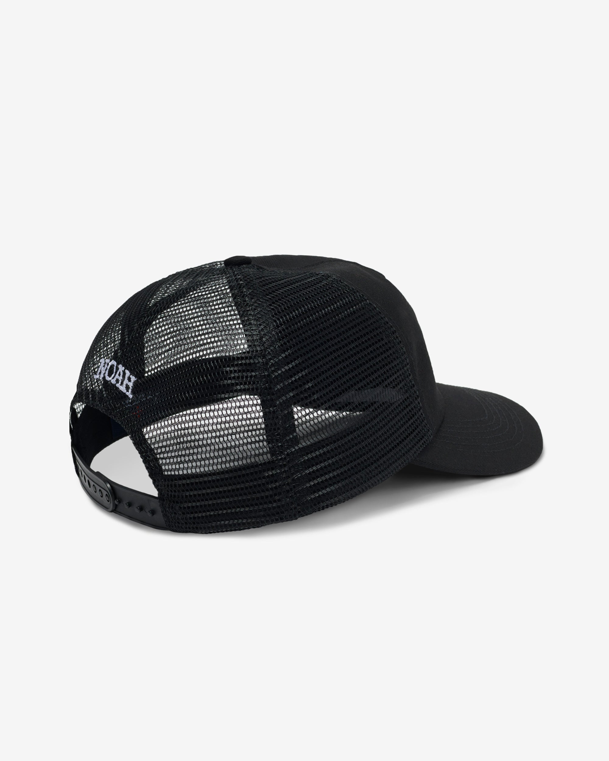 Made in USA. 100% cotton front with mesh back. Adjustable snapback closure. Embroidered graphic on front. Final sale.