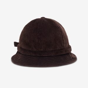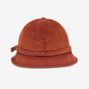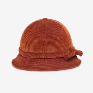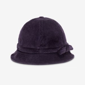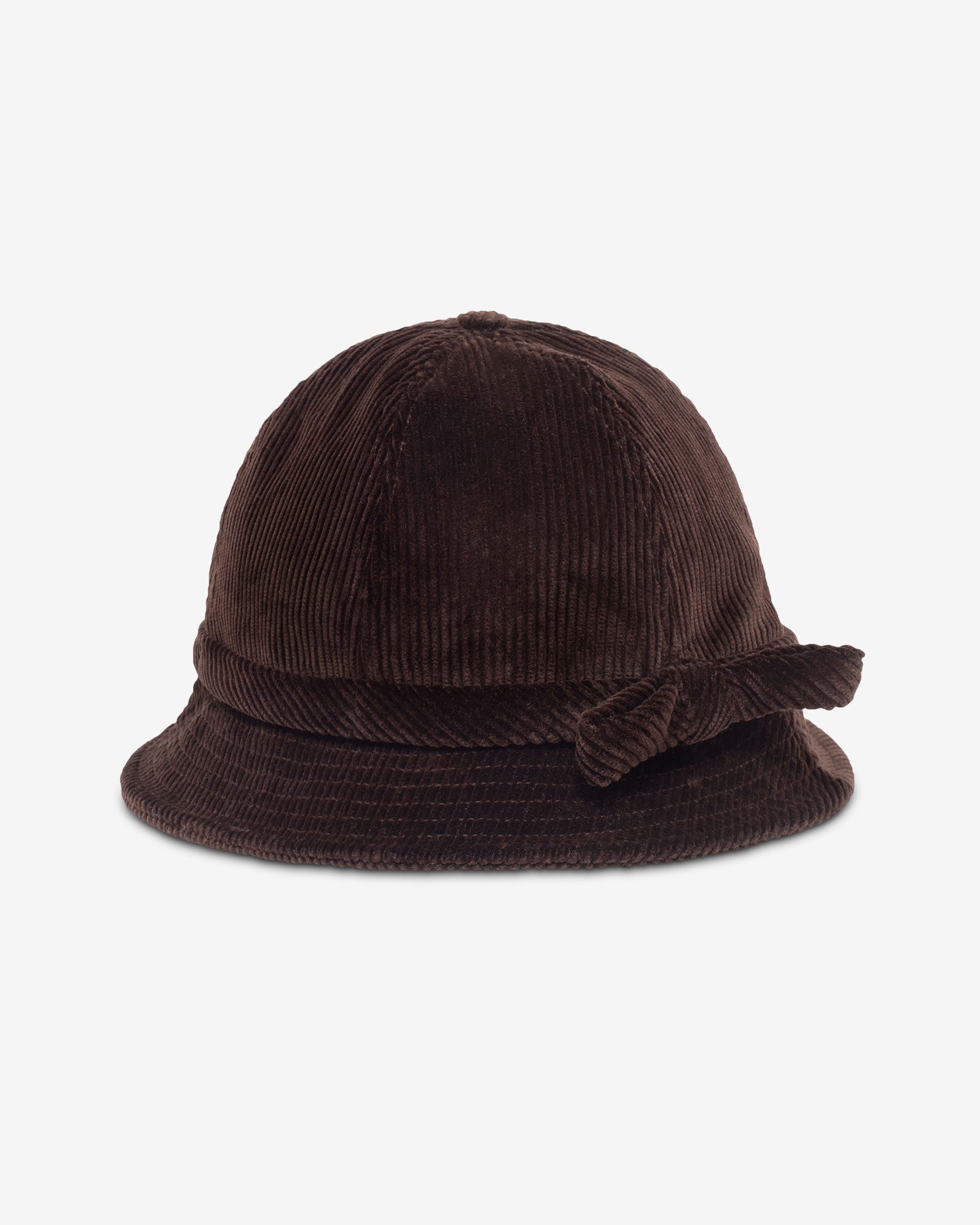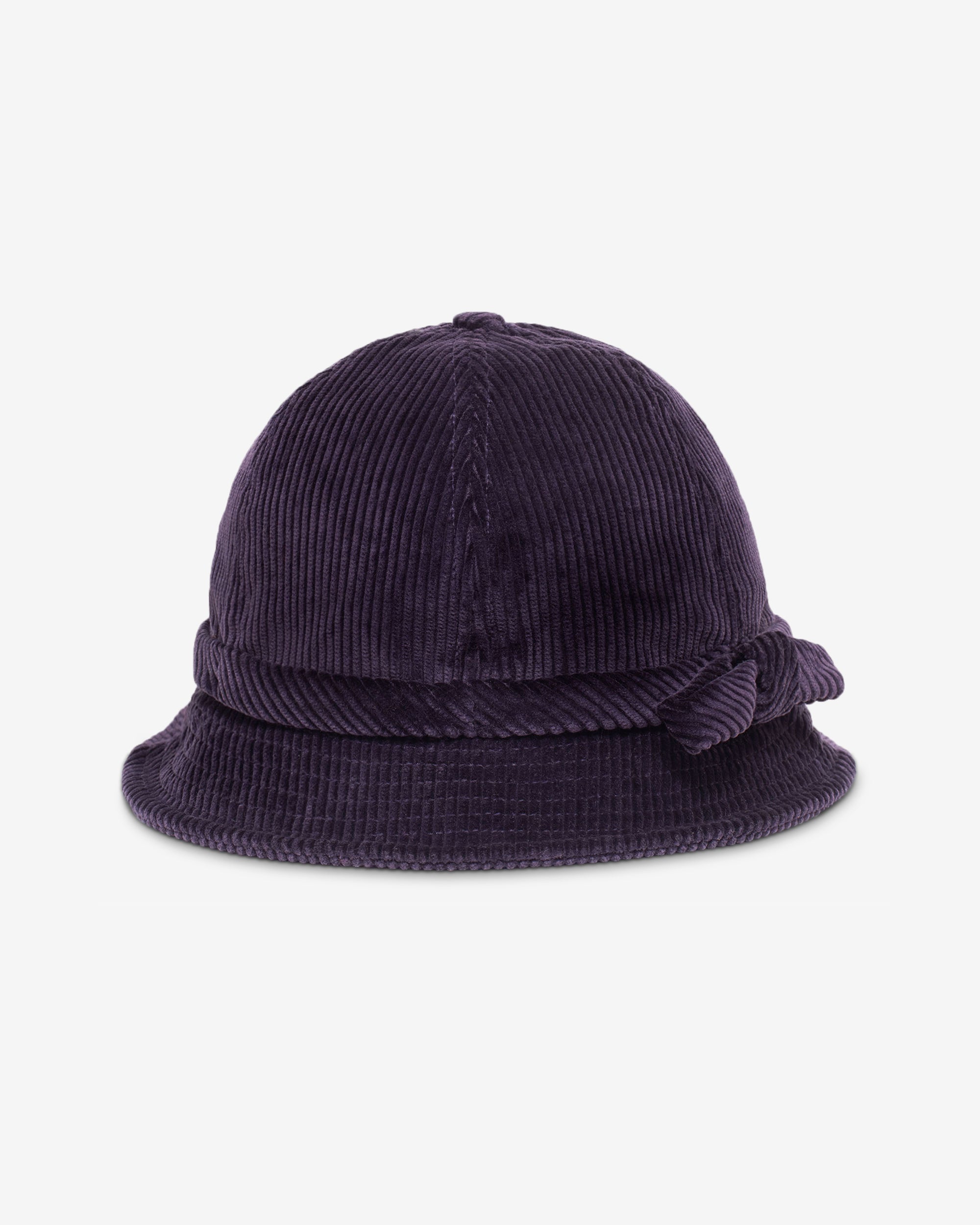 Made in USA. 100% cotton heavyweight English corduroy. Self-fabric hat band with bow on side.