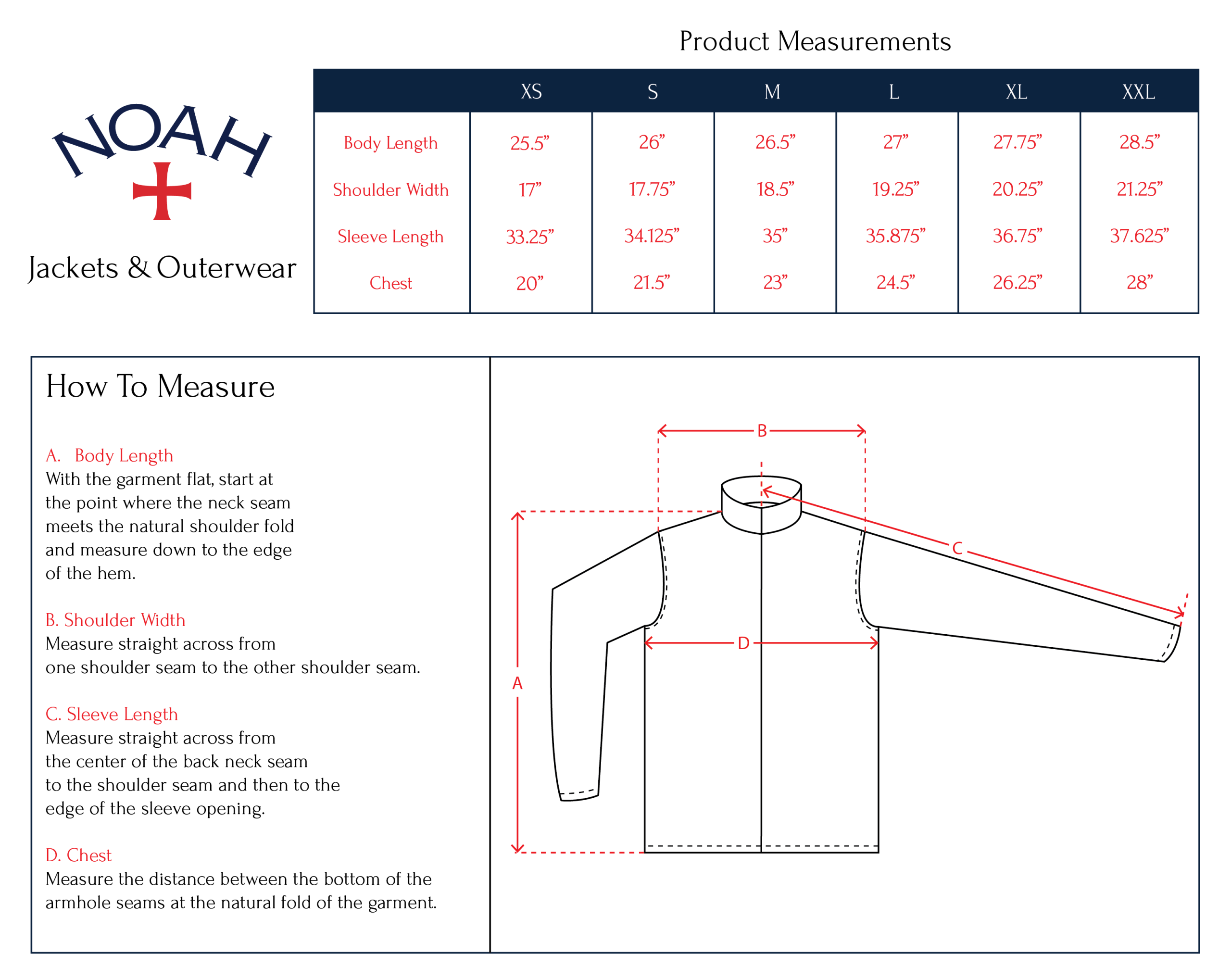 Made in Portugal. 100% cotton corduroy. Unlined. Two front welt pockets. Snap closure. Elasticated cuffs and drawcord hem. Noah logo embroidered above cuff. Pero is 6’0 and wears a size M