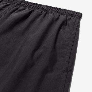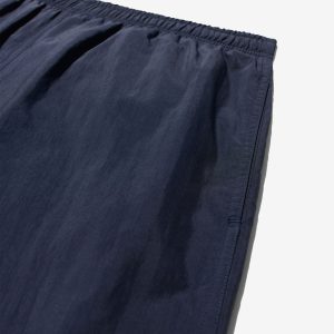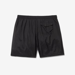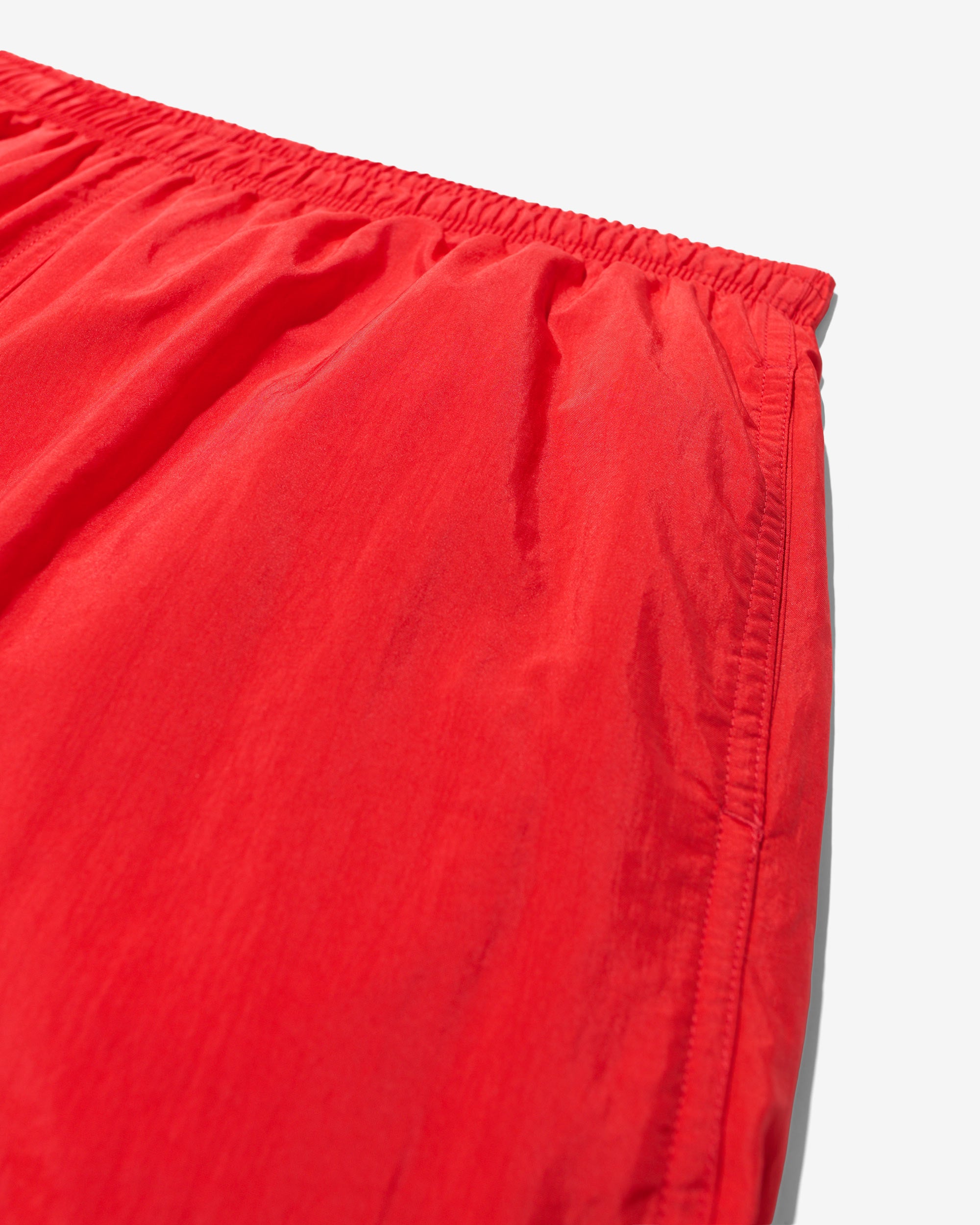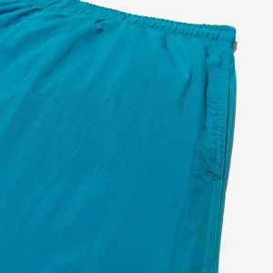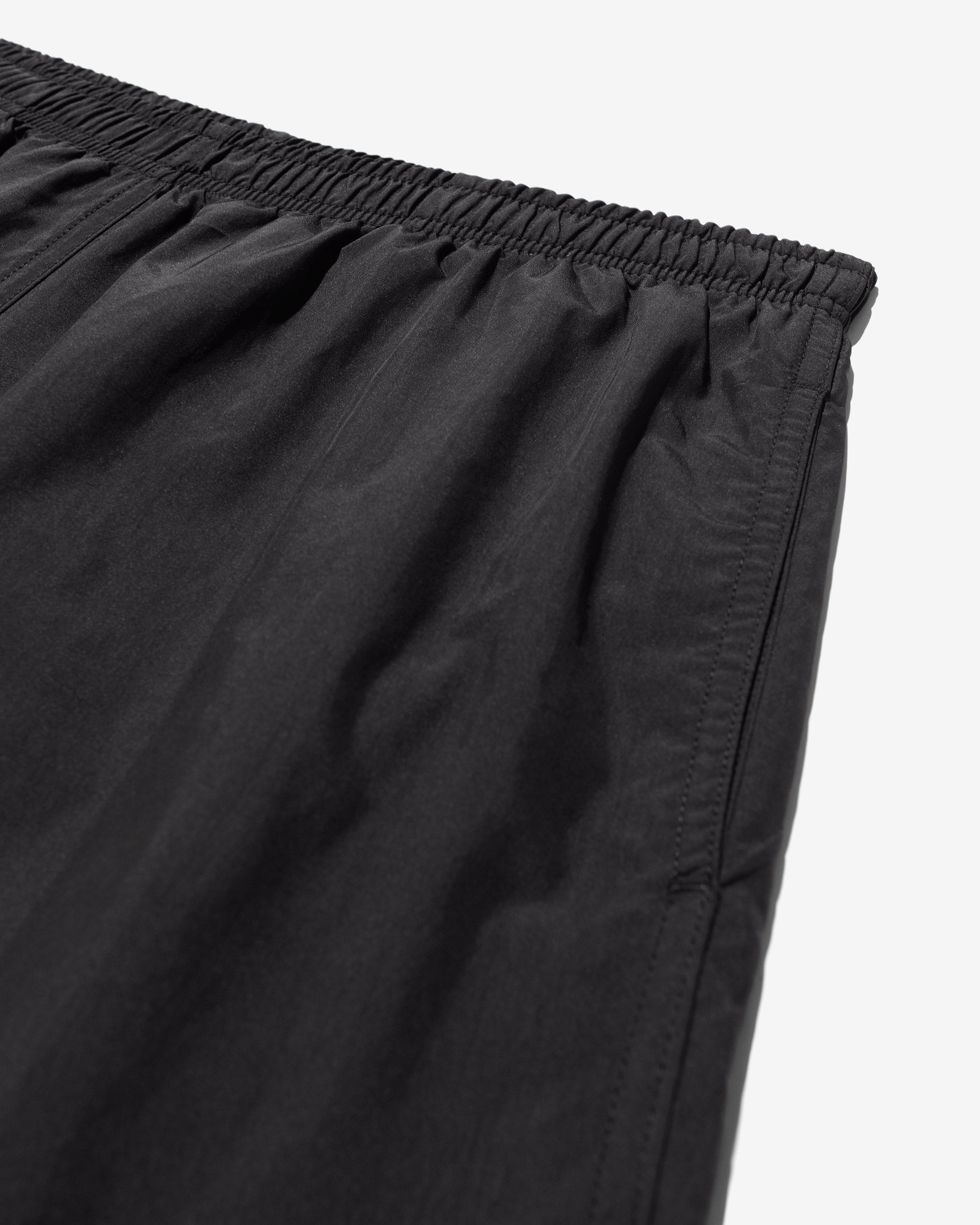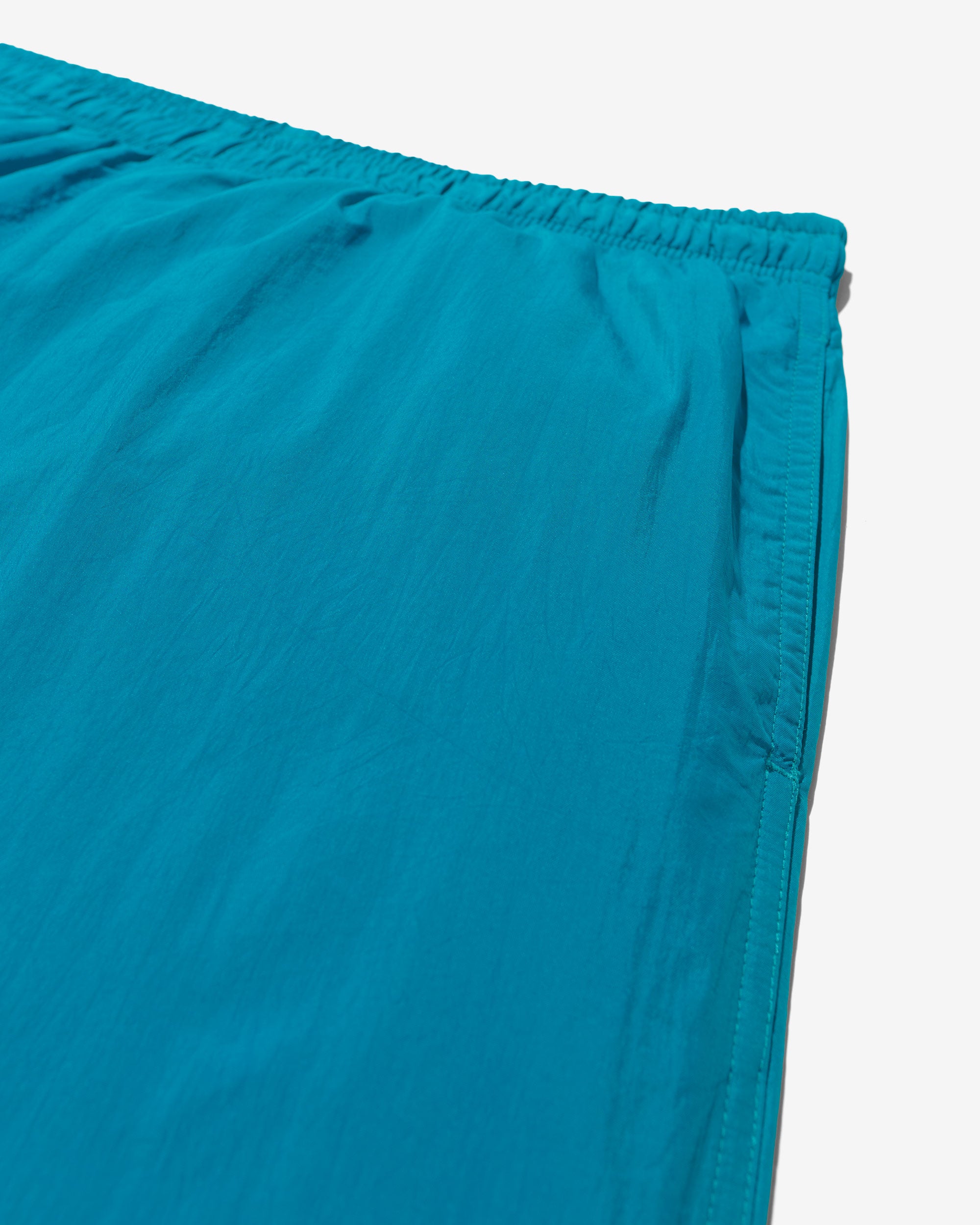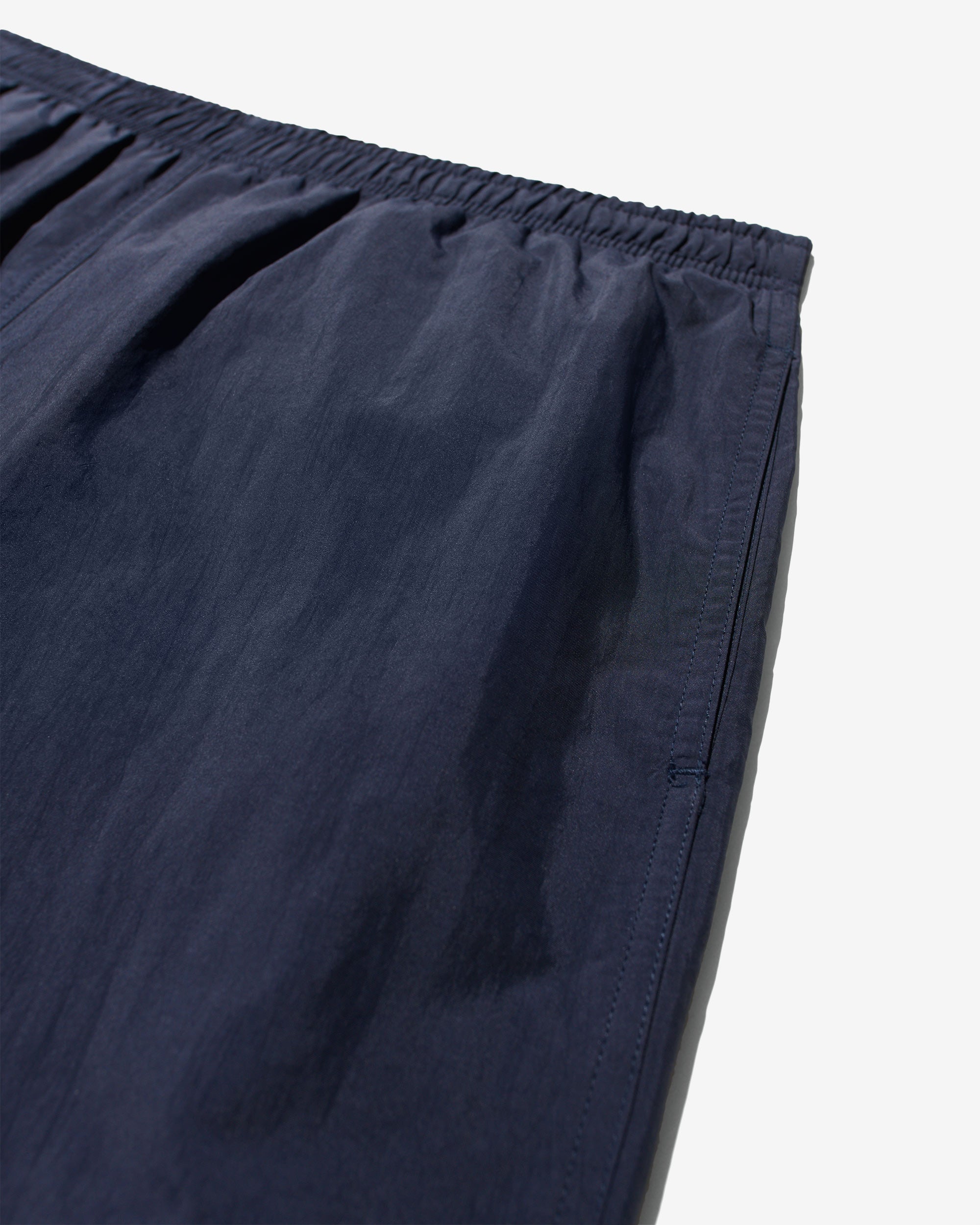 Made in Portugal. 100% crinkle nylon with nylon mesh liner. Elastic drawstring waist. On-seam front pockets. Flap back pocket with snap closure and drain vent