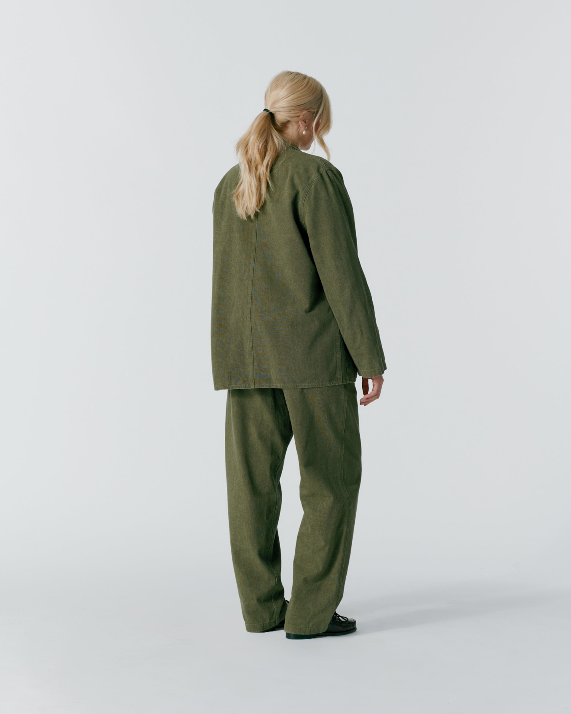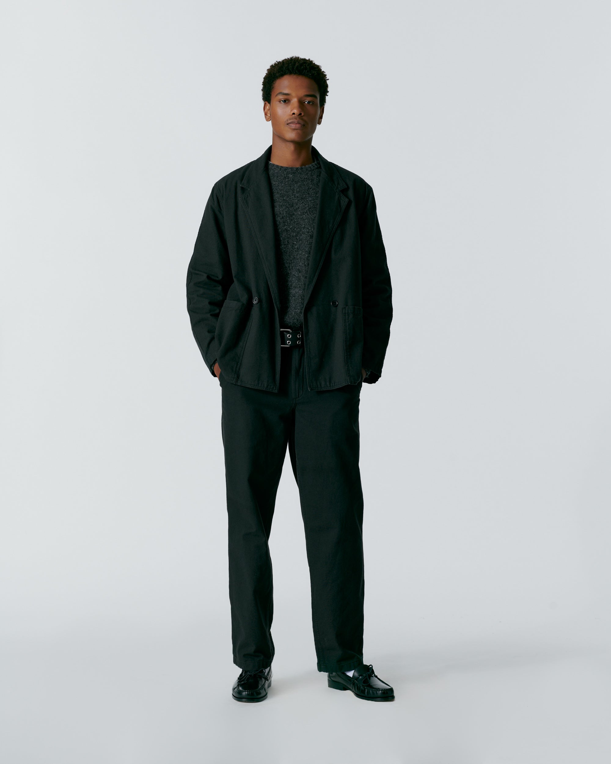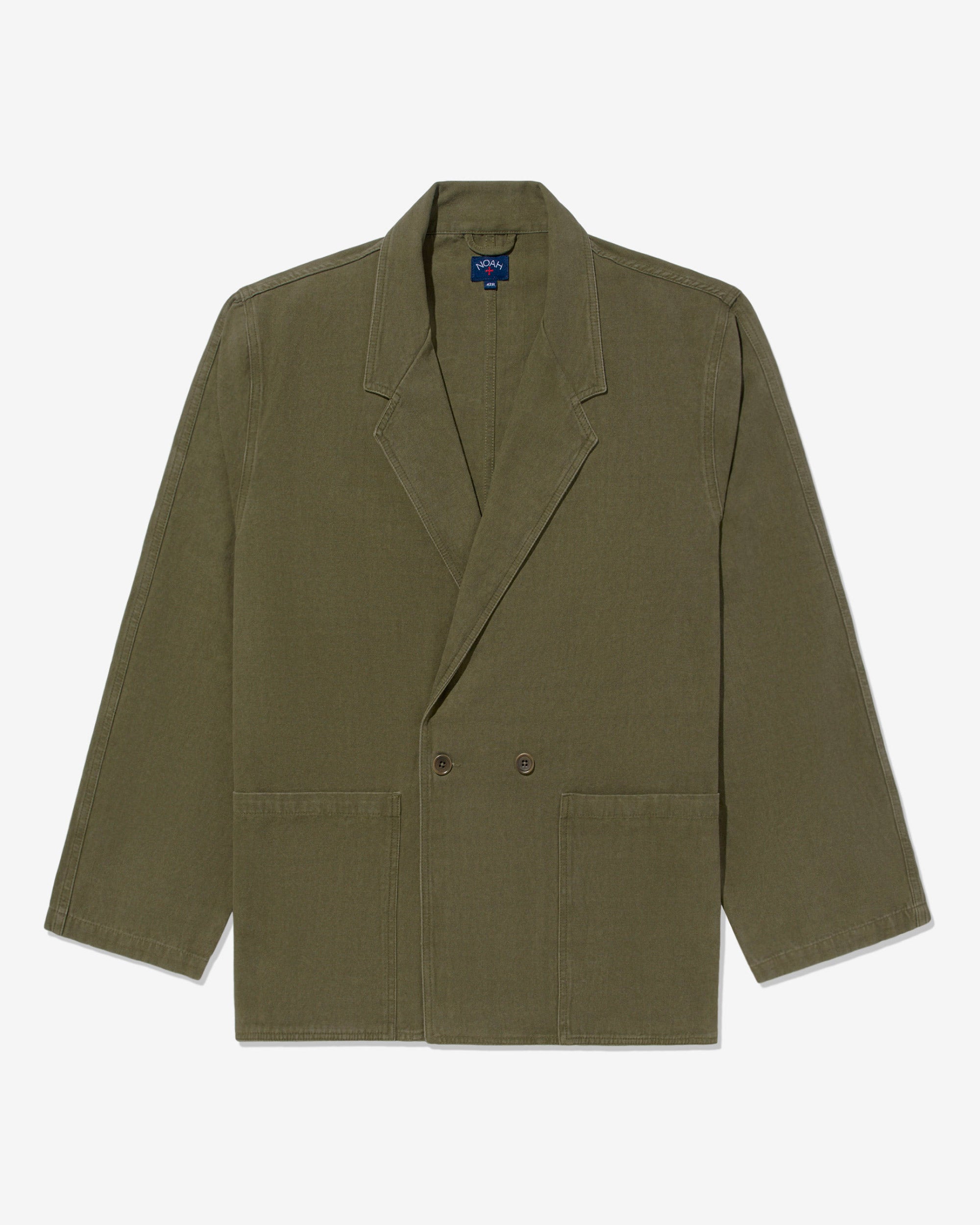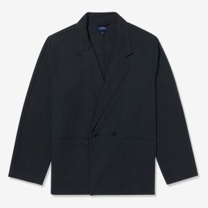 Made in Portugal. 100% organic cotton from Spain. Double breasted with notch lapels. Two front patch pockets. Unlined. Oversized for comfortable. relaxed look. Unstructured. Corozo buttons. Nile is 6’2 and wearing size 40. Cushla is 5’11 and wearing size 40.