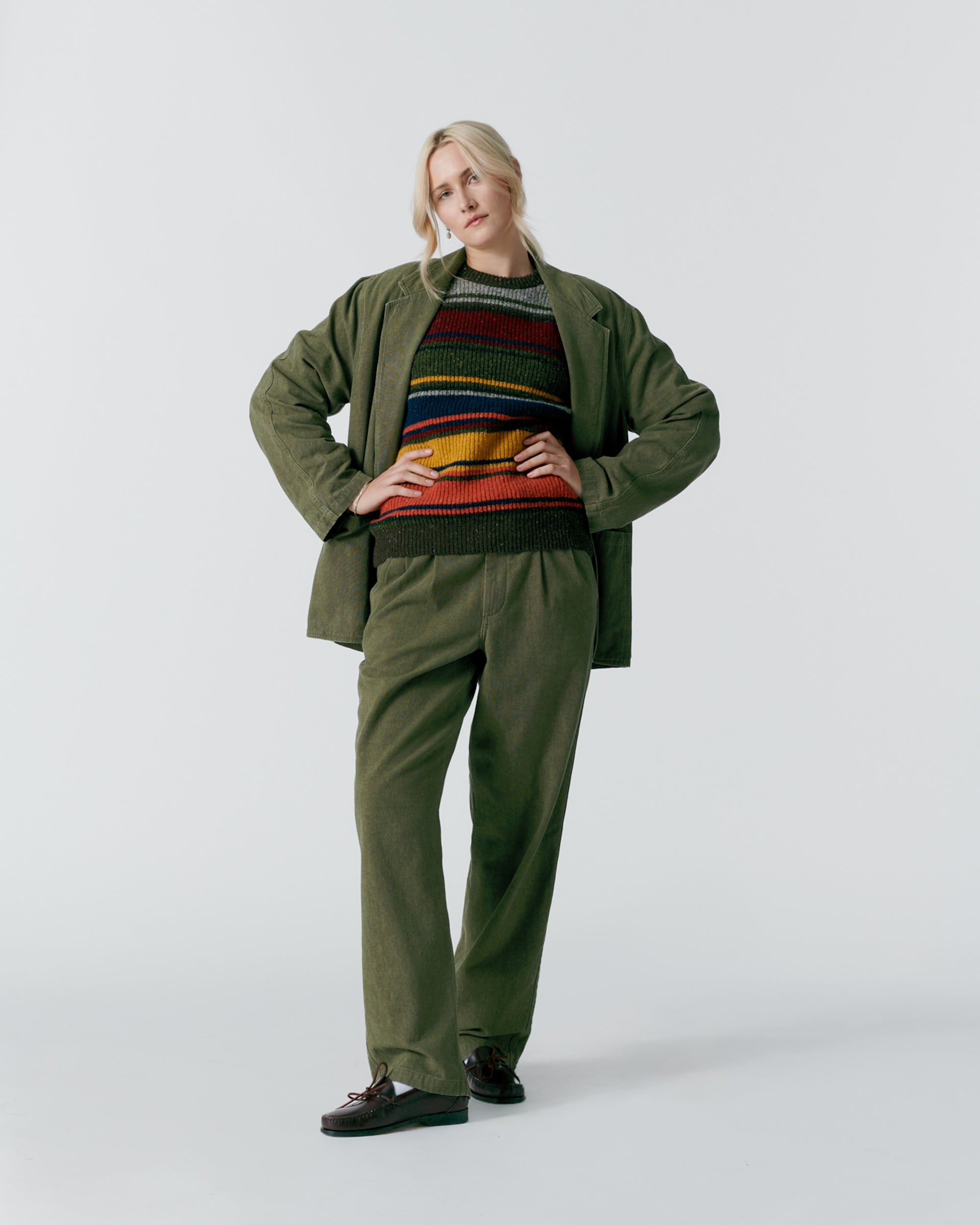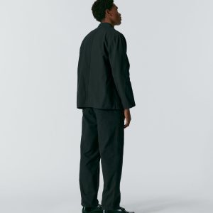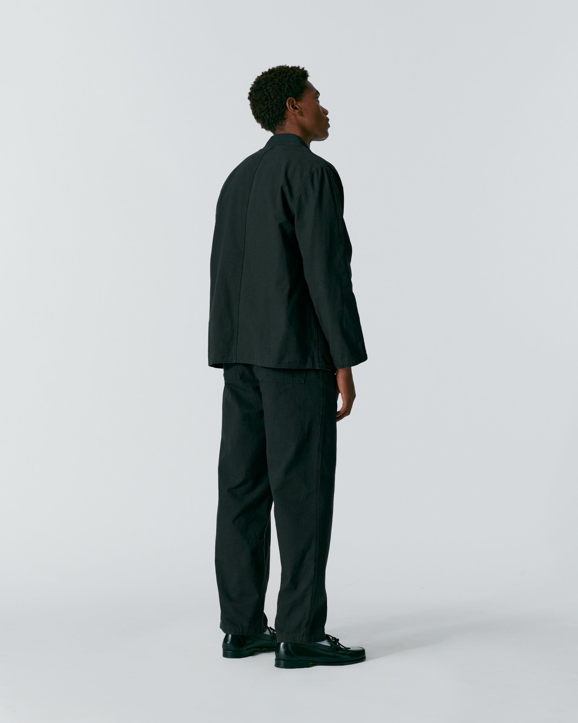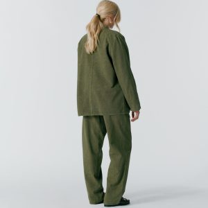 Made in Portugal. 100% organic cotton from Spain. Double breasted with notch lapels. Two front patch pockets. Unlined. Oversized for comfortable. relaxed look. Unstructured. Corozo buttons. Nile is 6’2 and wearing size 40. Cushla is 5’11 and wearing size 40.