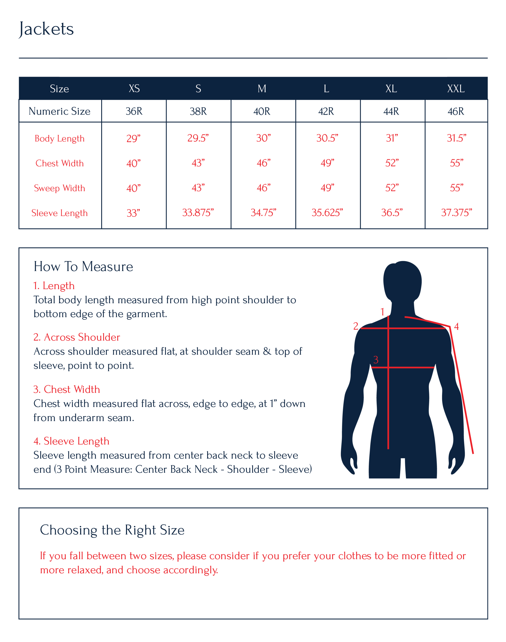 | Size | 34R, 36R, 38R, 40R, 42R, 44R, 46R |