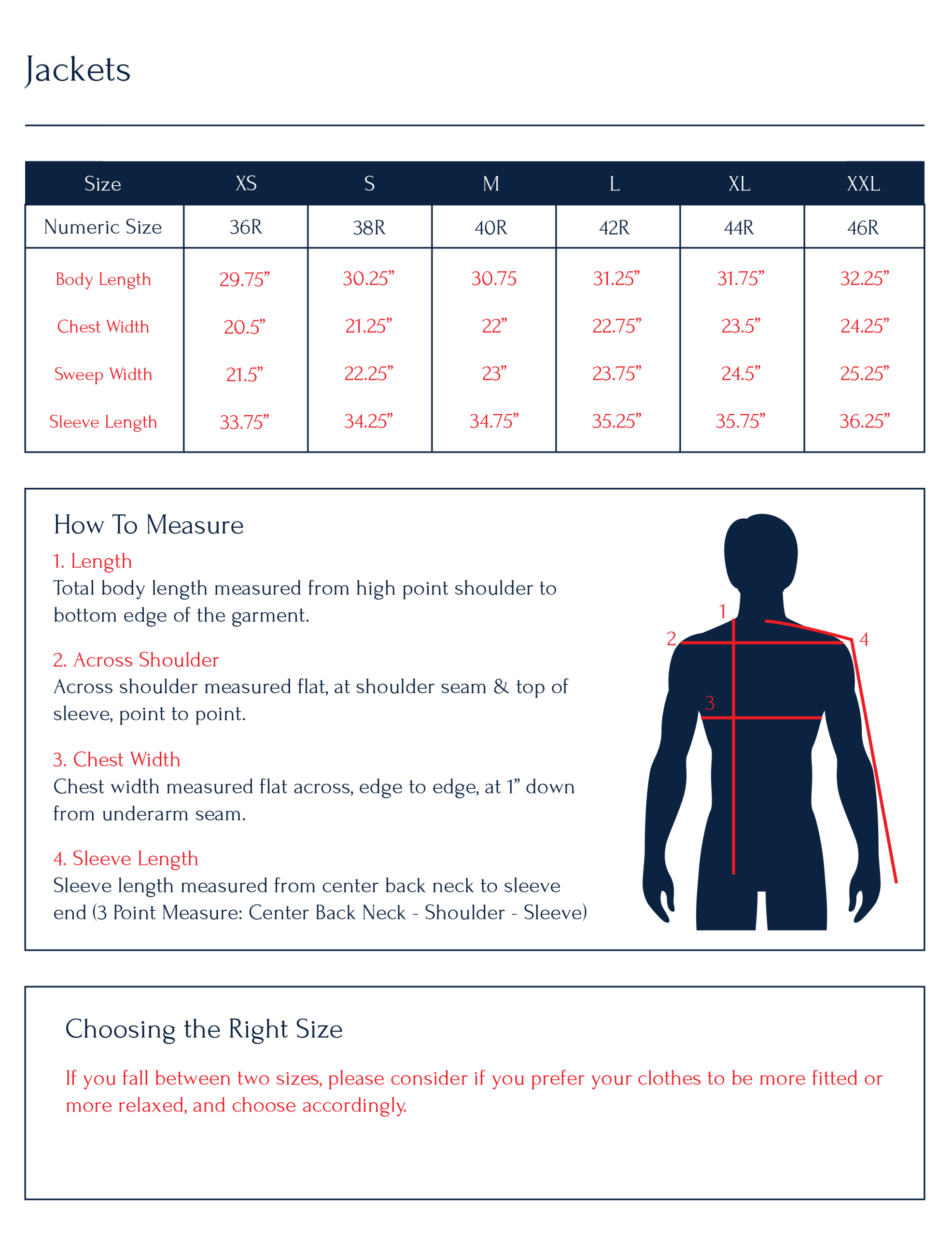 | Size | 34R, 36R, 38R, 40R, 42R, 44R, 46R |