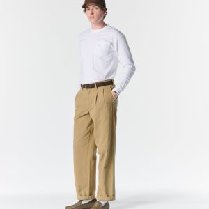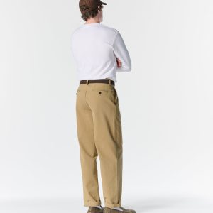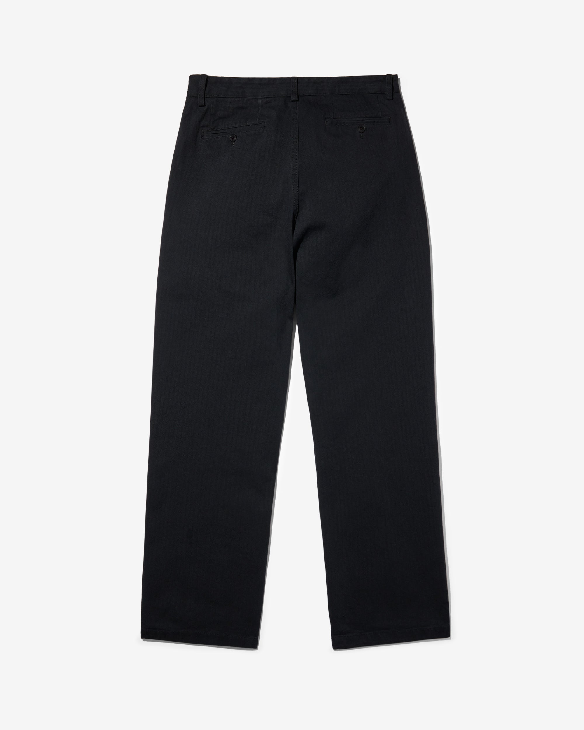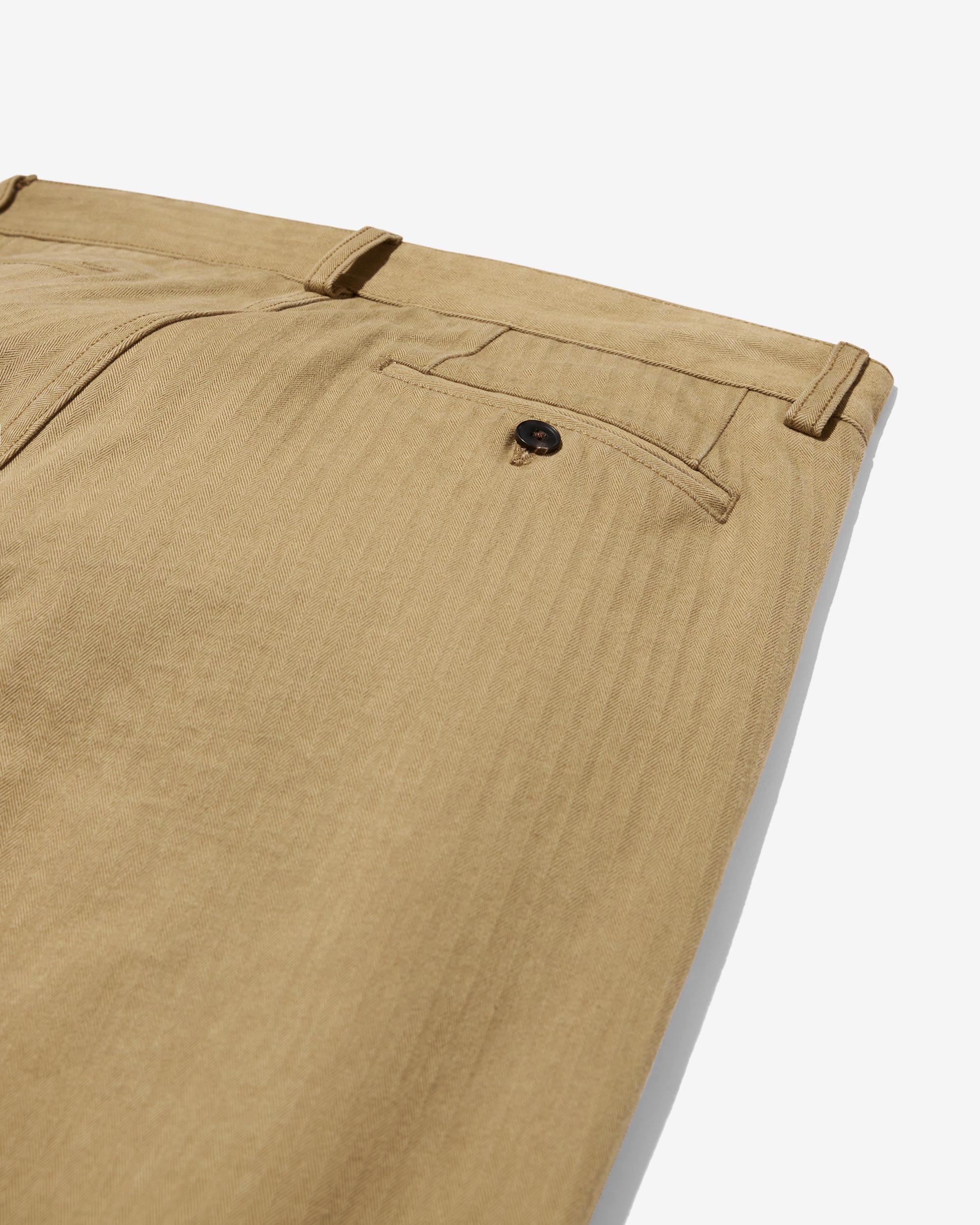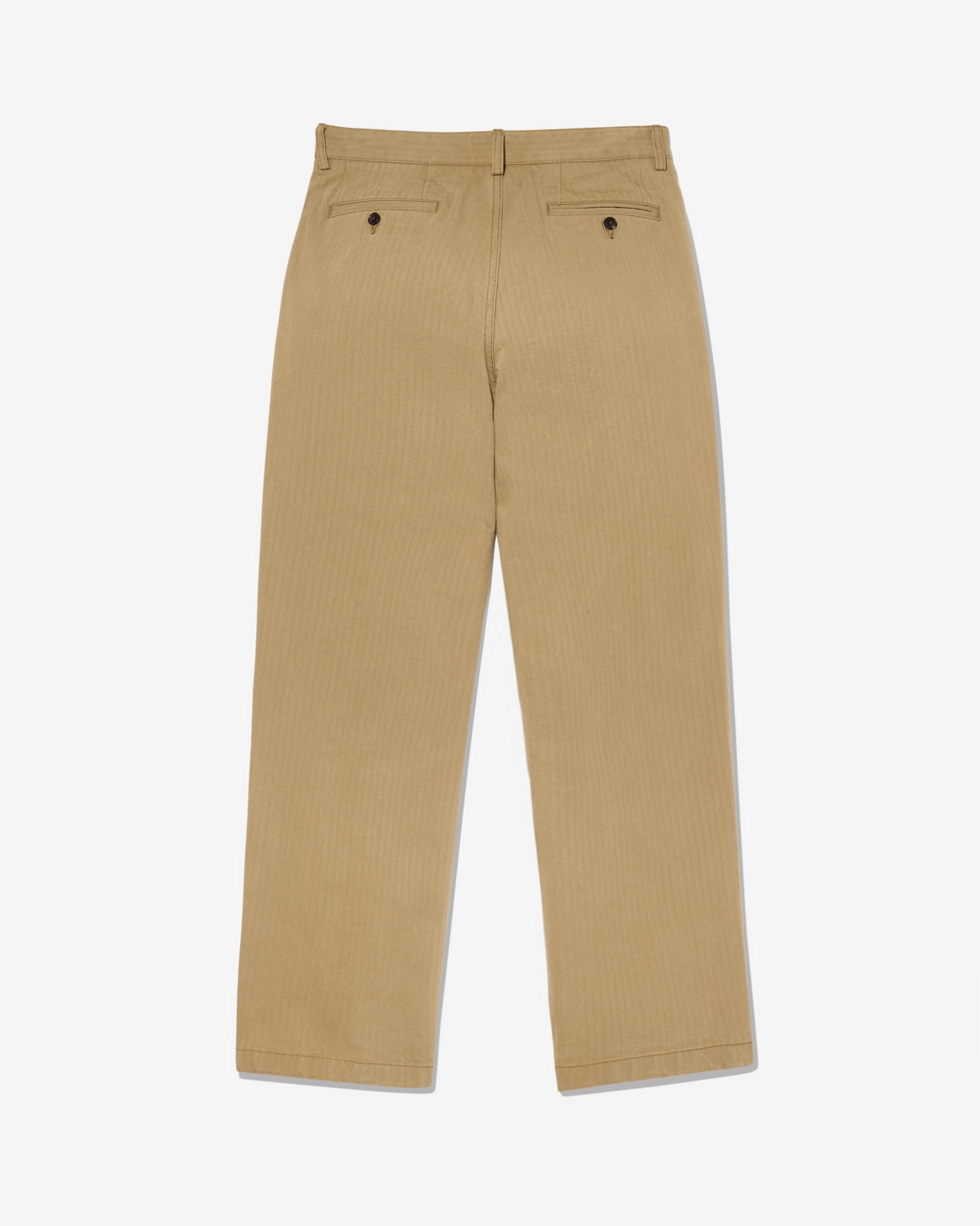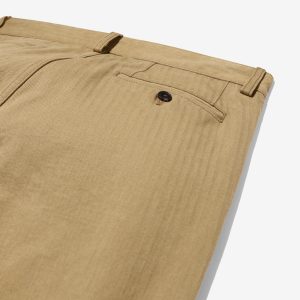 Made in Portugal. 100% cotton herringbone from Japan. Double-pleated with zip-fly and button closure. Side seam pockets. Besom back pockets with button closures. Josh is 6’0 and wears a size 32