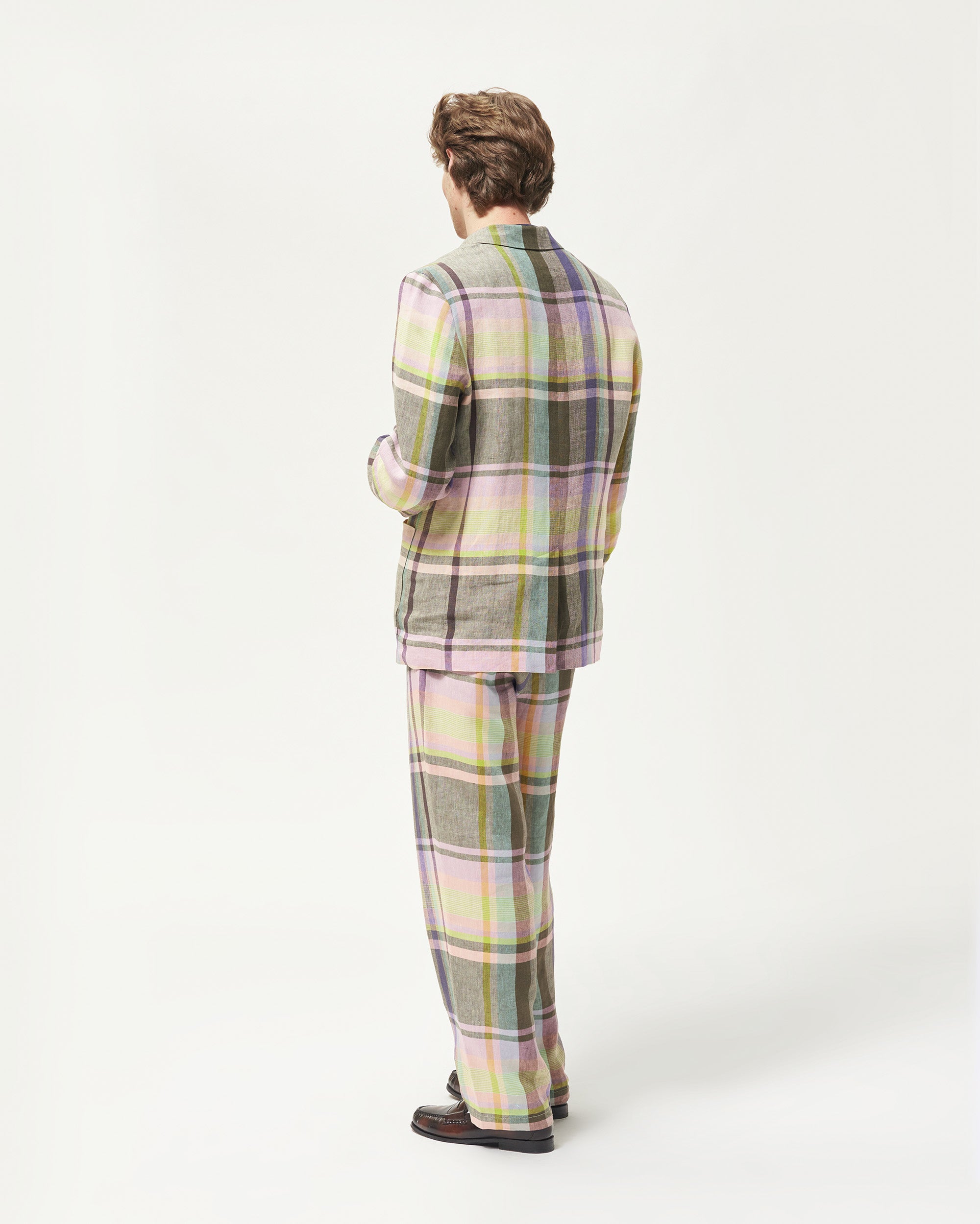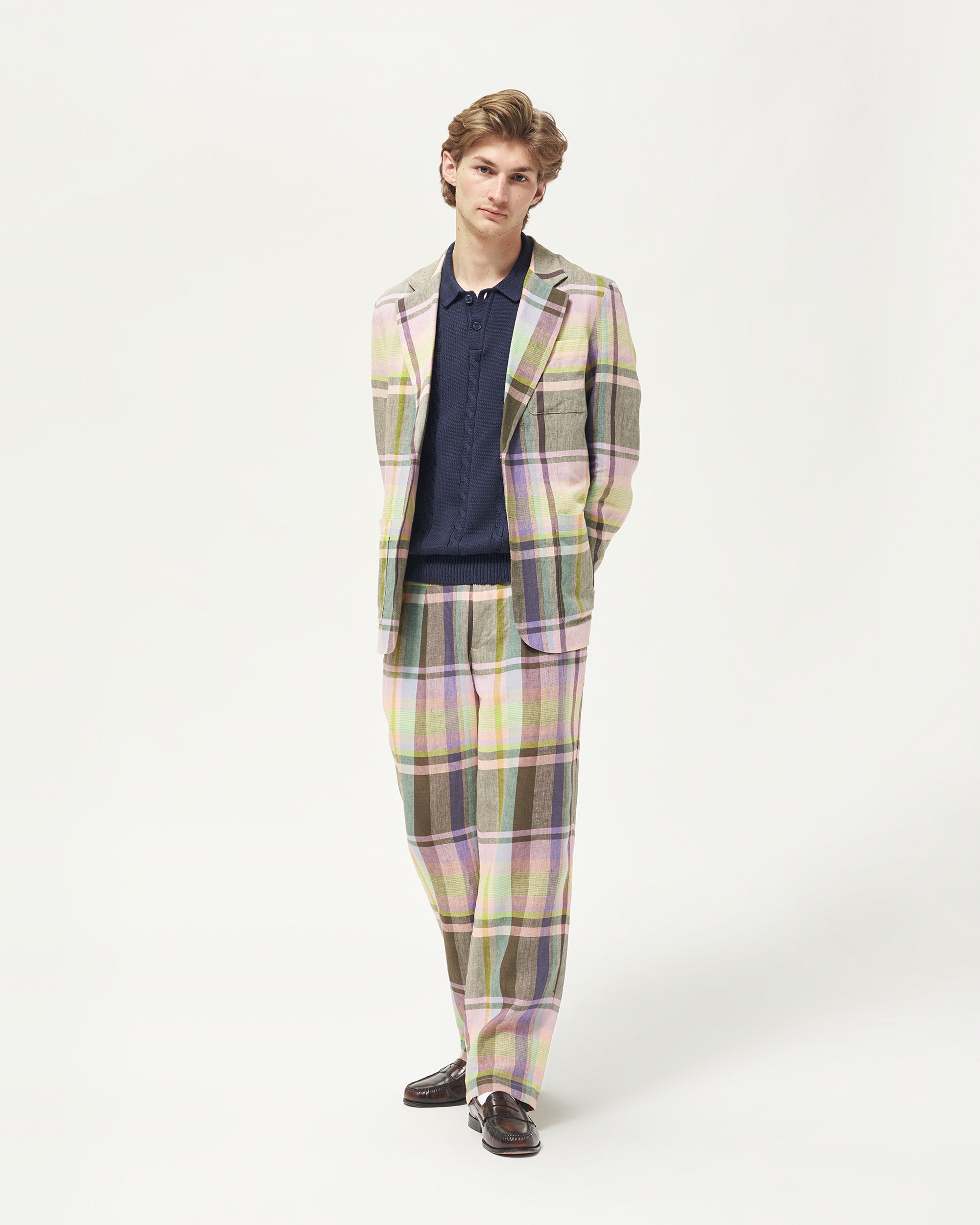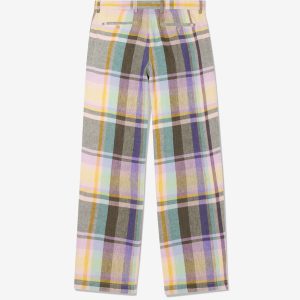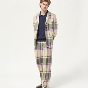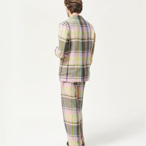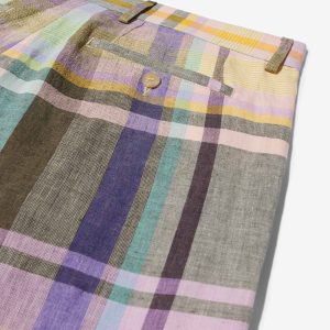 Made in Italy. 100% Italian linen with yarn-dyed plaid made exclusively for Noah. Double-pleated with zip-fly and metal hook & eye closure. Besom pockets on back with button-closure. Final sale.Â