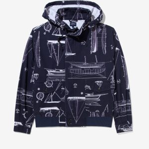 • Stand-up collar with adjustable stowaway hood with drawcord