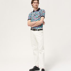 Made in Portugal. 100% cotton jersey with all over print. Flat knit polo collar and cuffs. Split hem with side vents. Two-button placket with button-closure. Embroidered logo on sleeve.