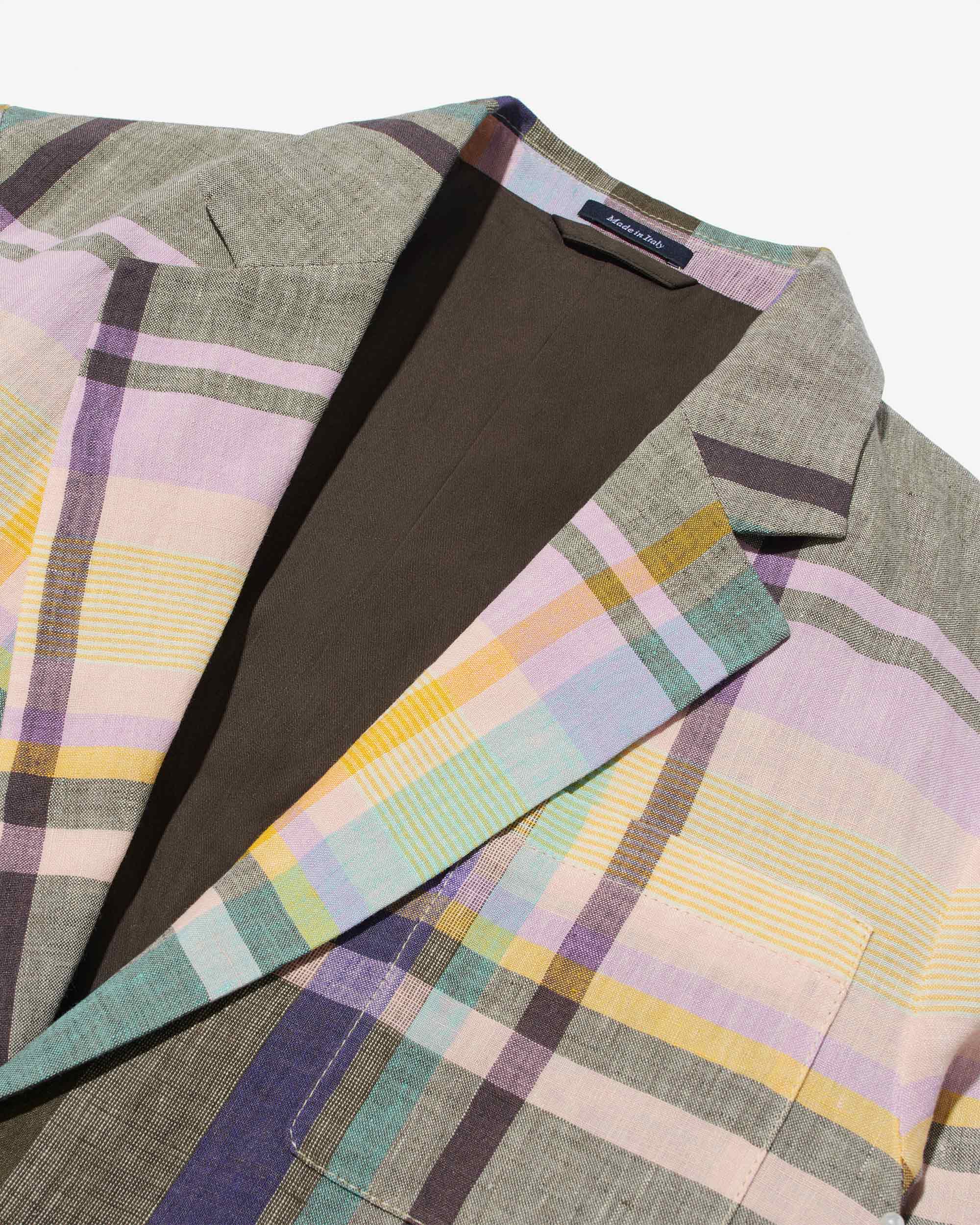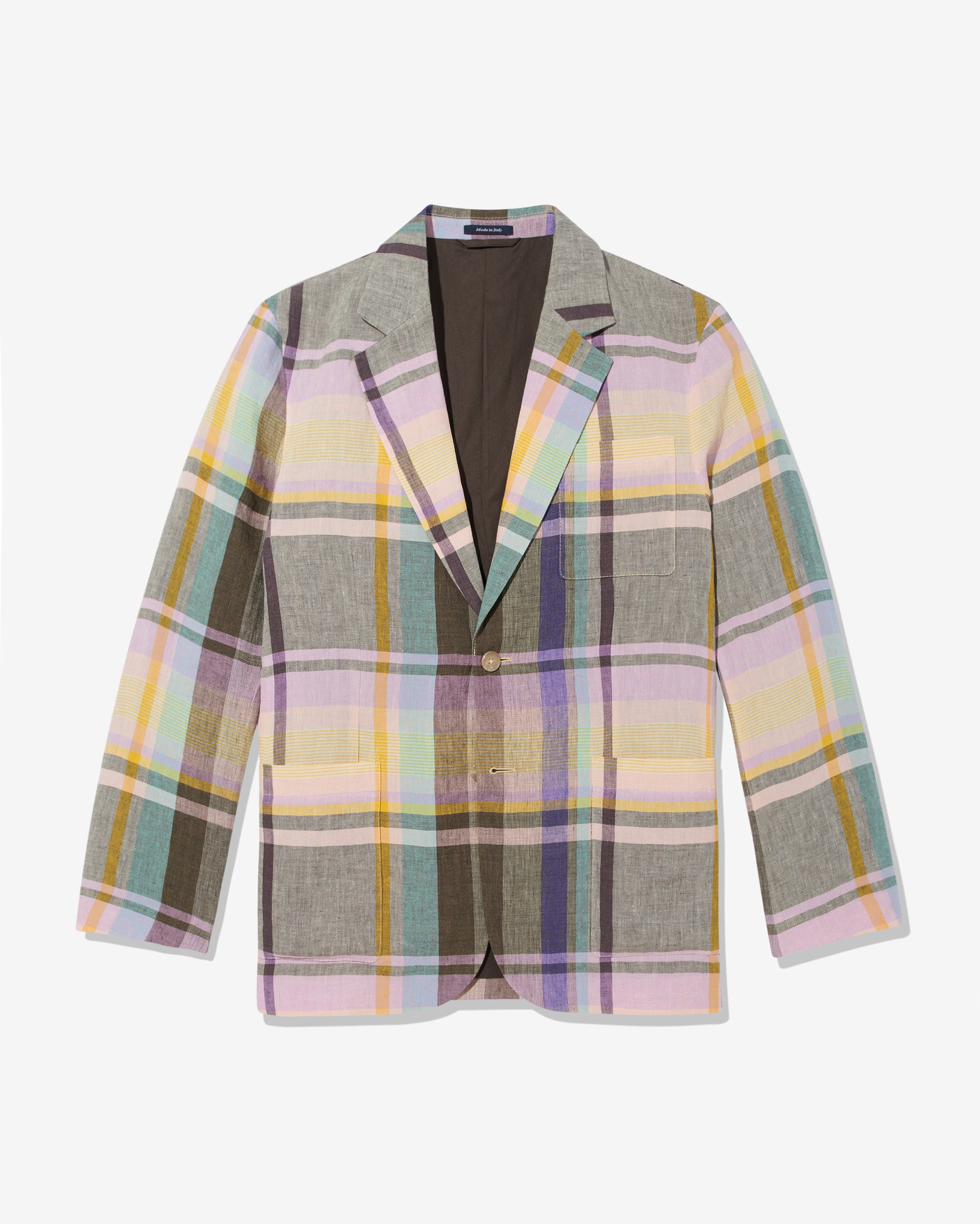 Made in Italy. 100% Italian linen. With yarn-dyed plaid made exclusively for Noah. 100% cotton lining. Genuine horn button closure with notched lapels. Welt pocket at chest. patch pockets at waist. Oversized for comfortable. relaxed look. Unstructured. Final sale.Â