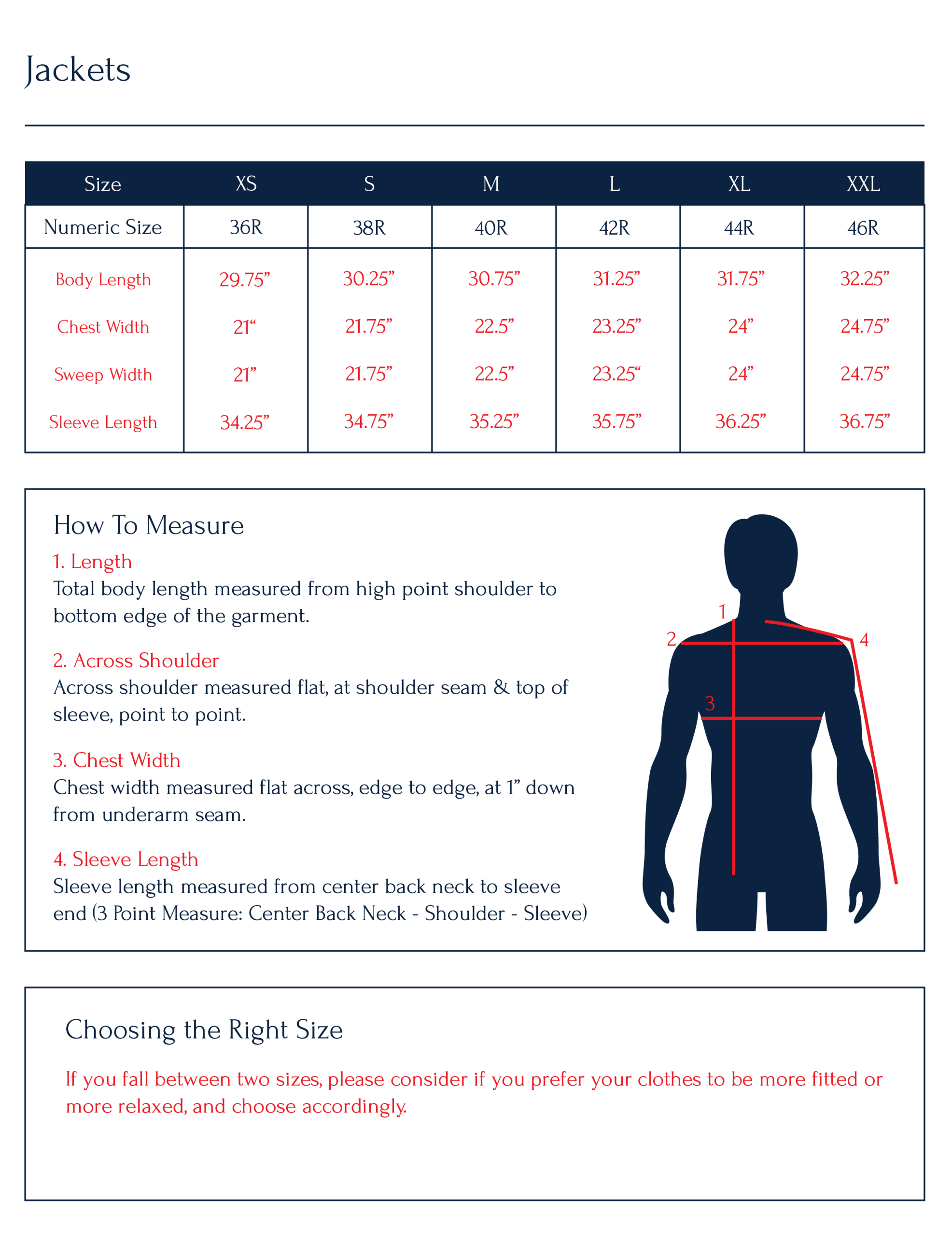 | Size | 34R, 36R, 38R, 40R, 42R, 44R, 46R |