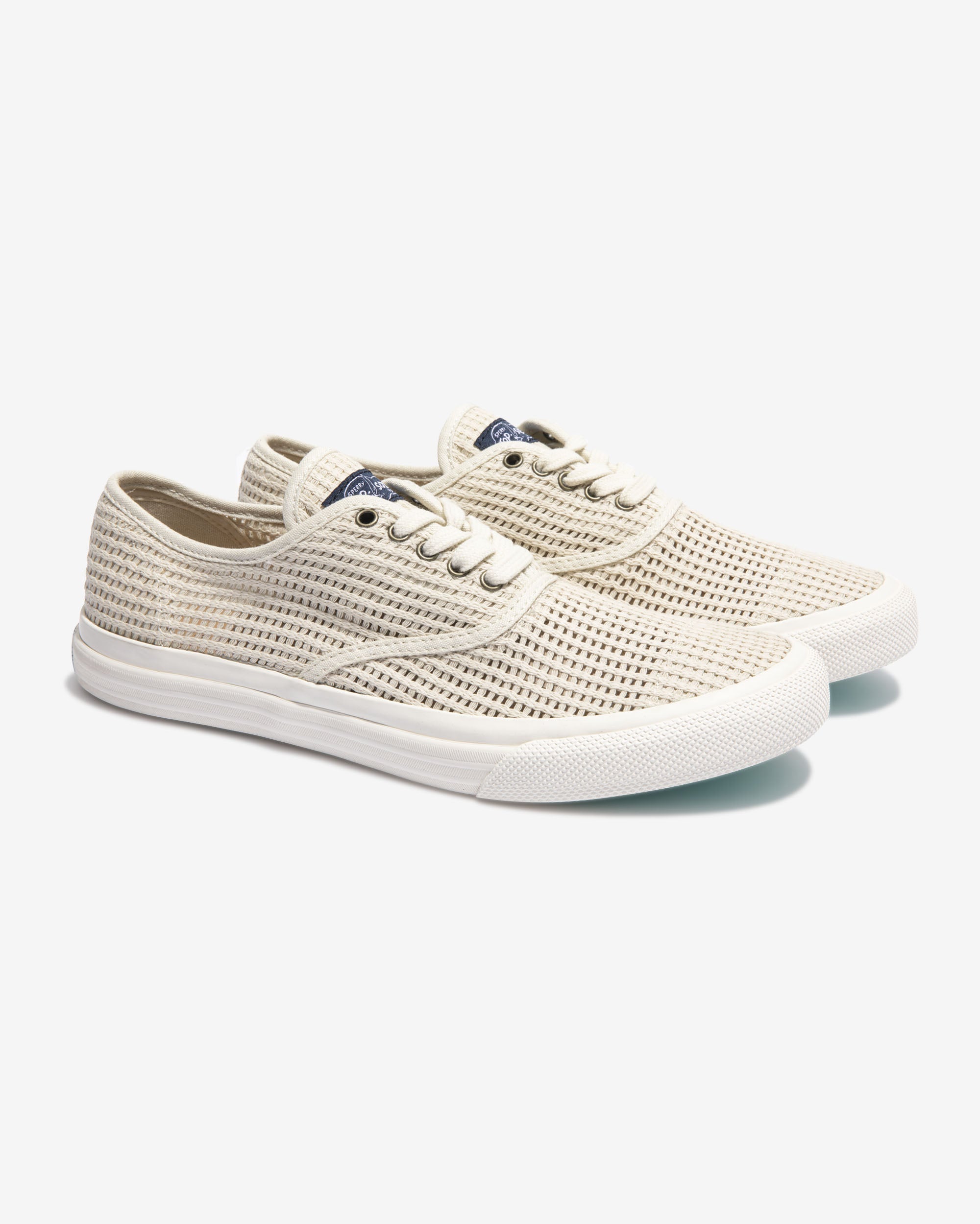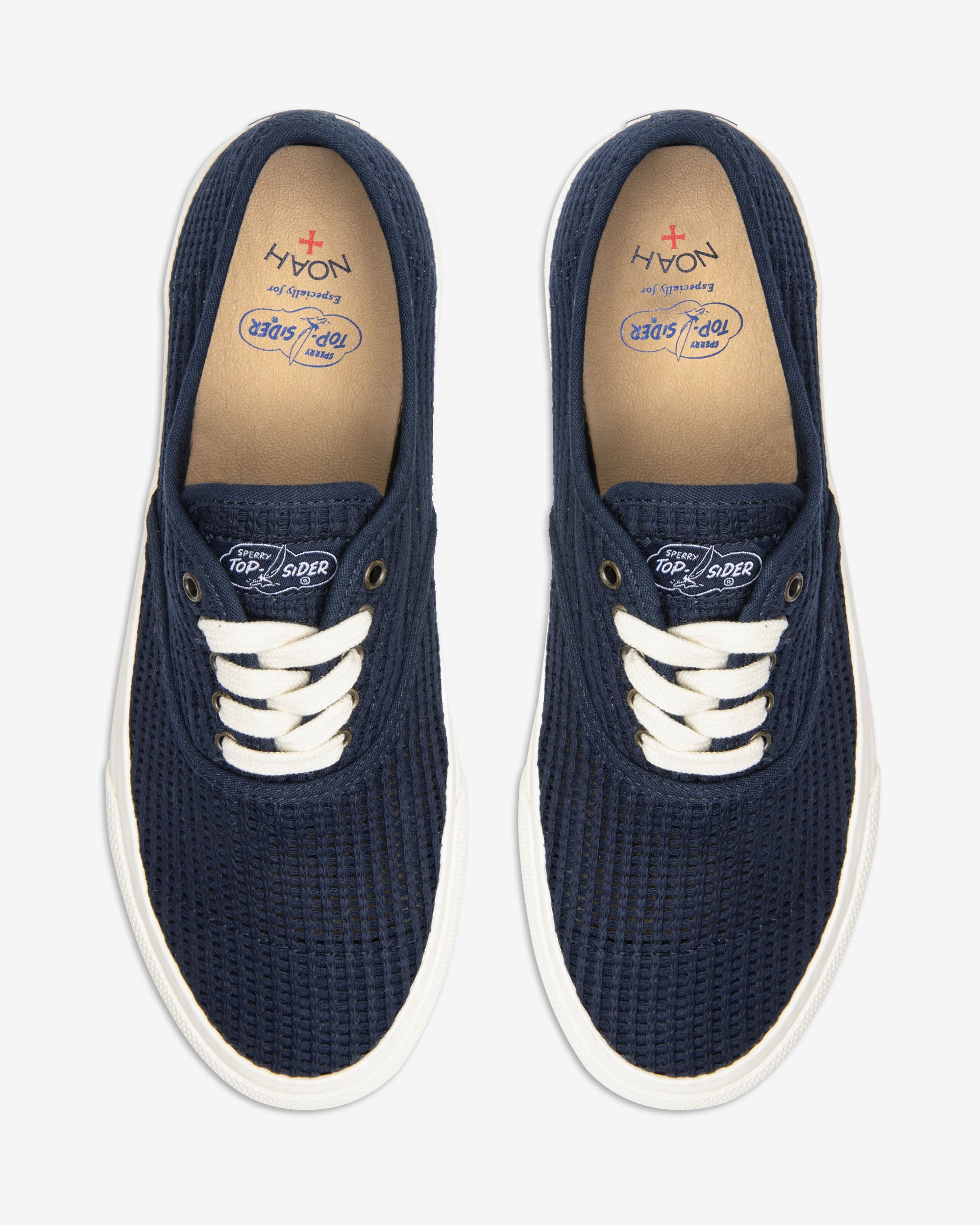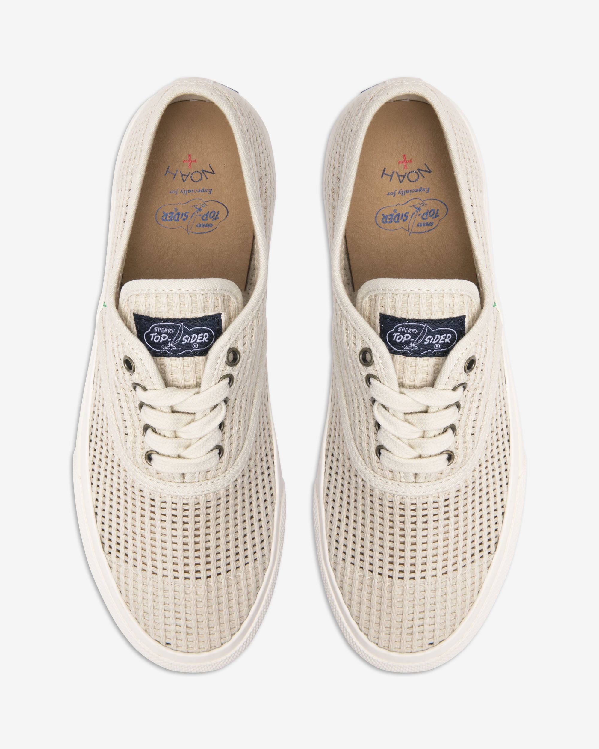 Made exclusively for Noah by Sperry Top-Sider. 100% cotton mesh upper. Non-slip. siped rubber sole. Leather insole with printed logos.
