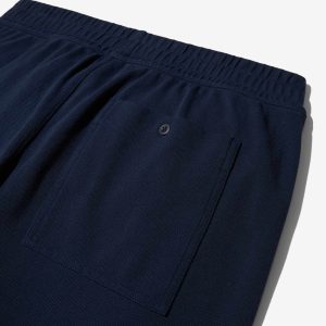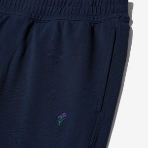 Made in Portugal. 100% cotton heavyweight piqué. 310 GSM. Elasticated waistband with internal drawcord. J-stitch on front. Two side seam pockets.One back patch pocket with button closure. Embroidered iris on thigh. Jamier is 6’1 and wearing a size M