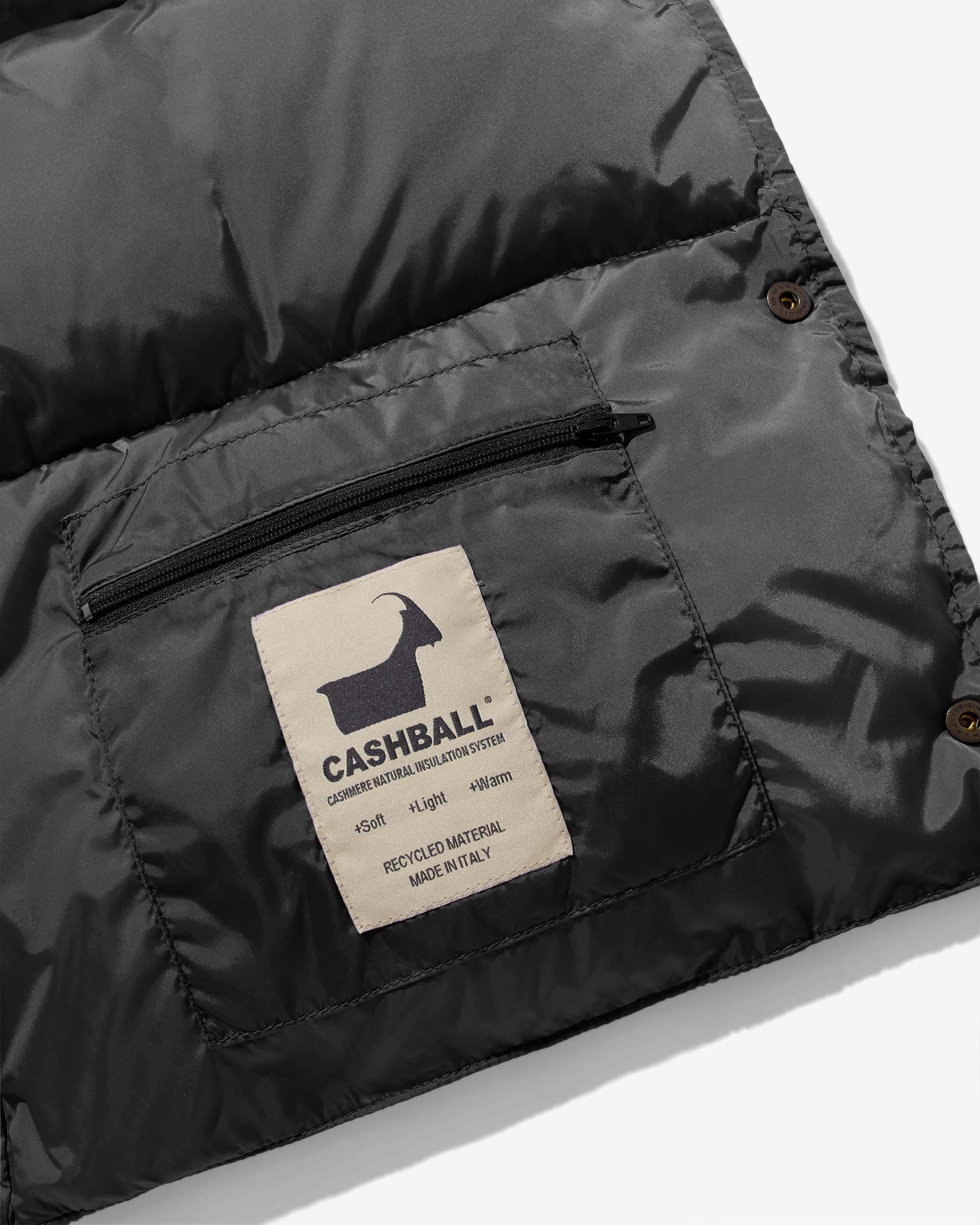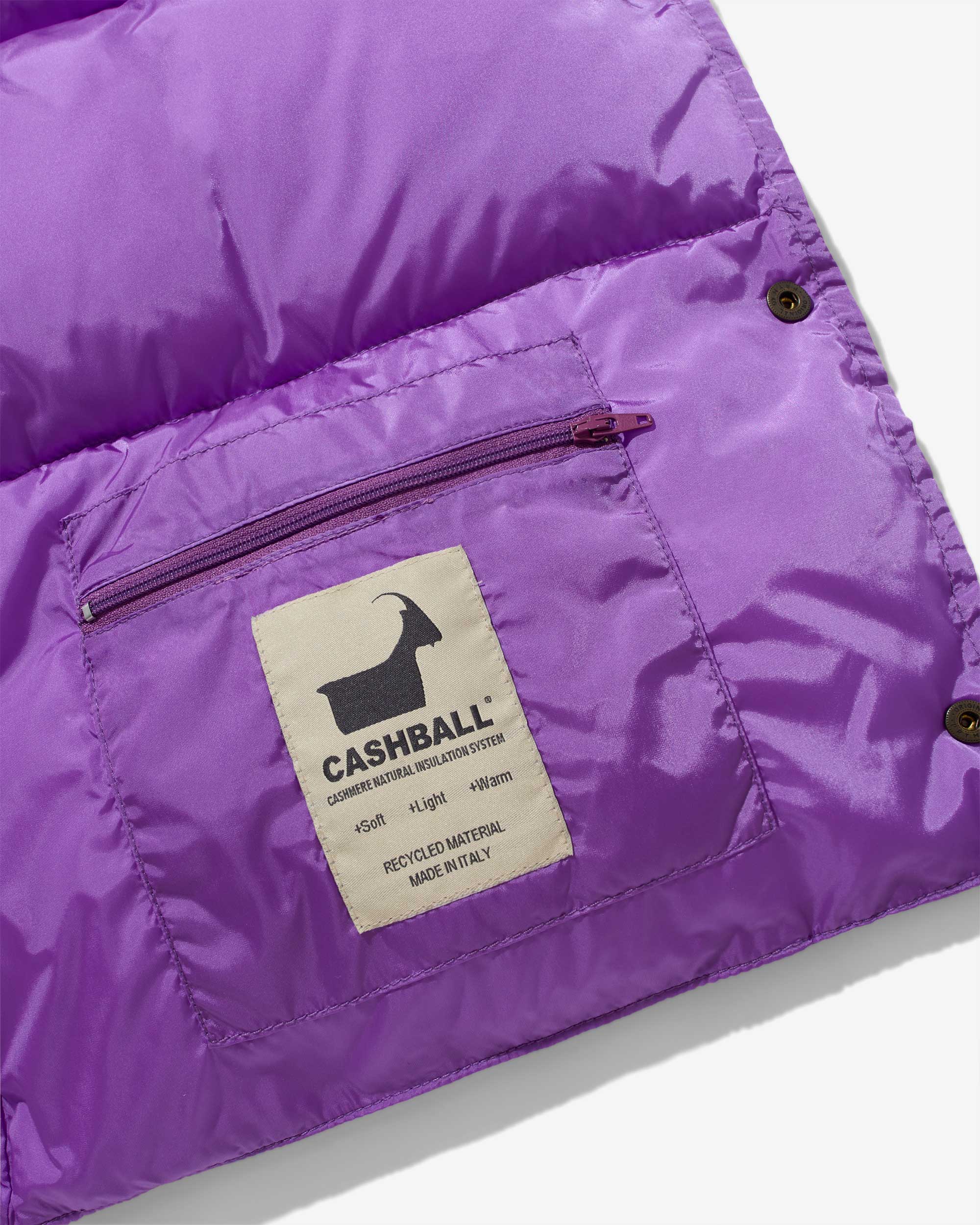 - 100% water-resistant nylon shell with Cashball recycled cashmere fill