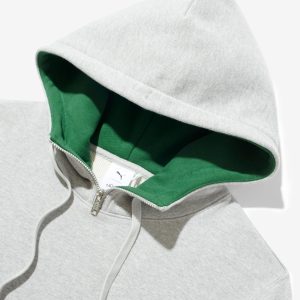 Made by Puma exclusively for Noah. 100% cotton (30% recycled cotton). 13.0 oz. French terry. High-collar hood with contrast lining. zip-closure and drawcords. Embroidered logo on pocket and above cuff. Final sale.Â