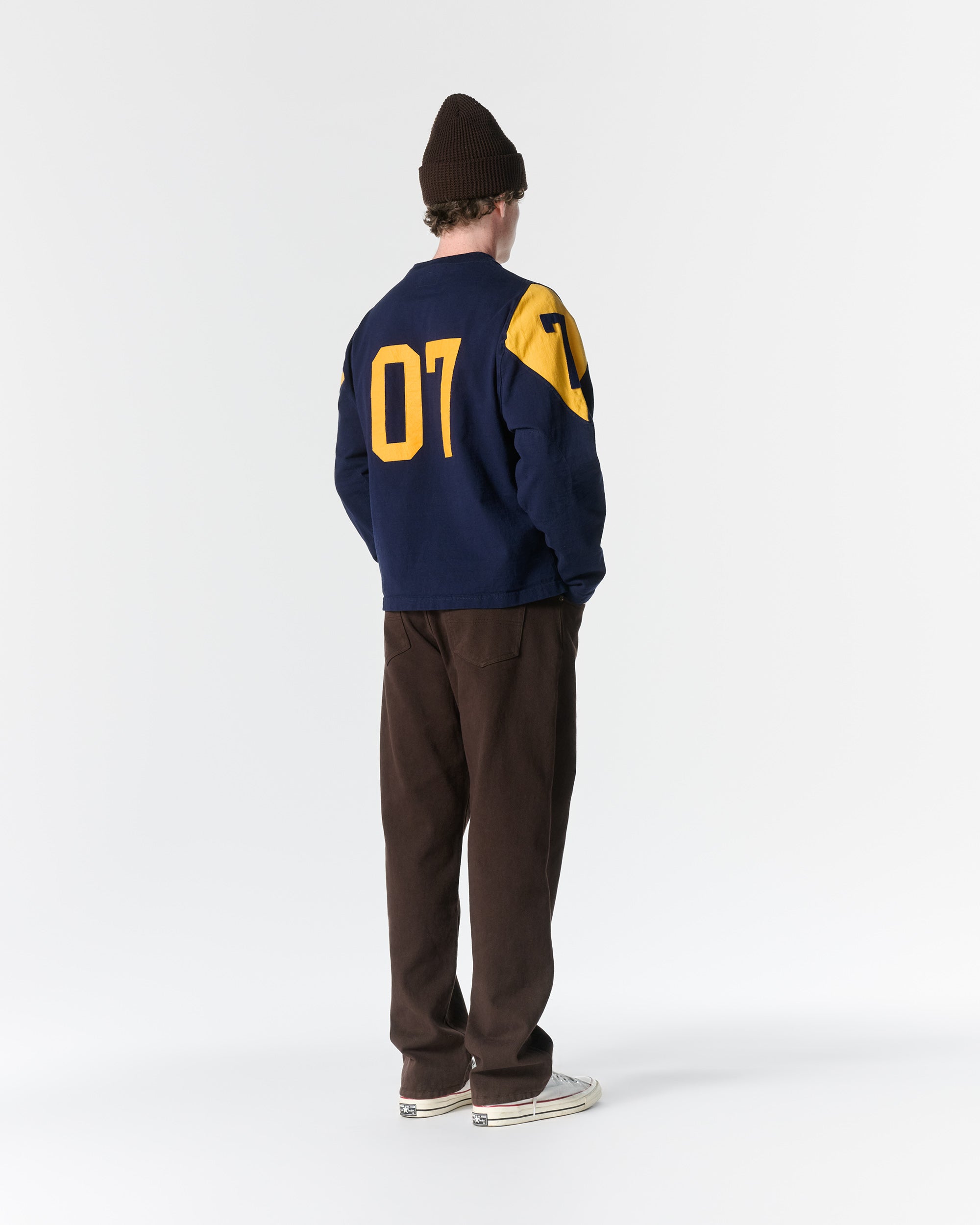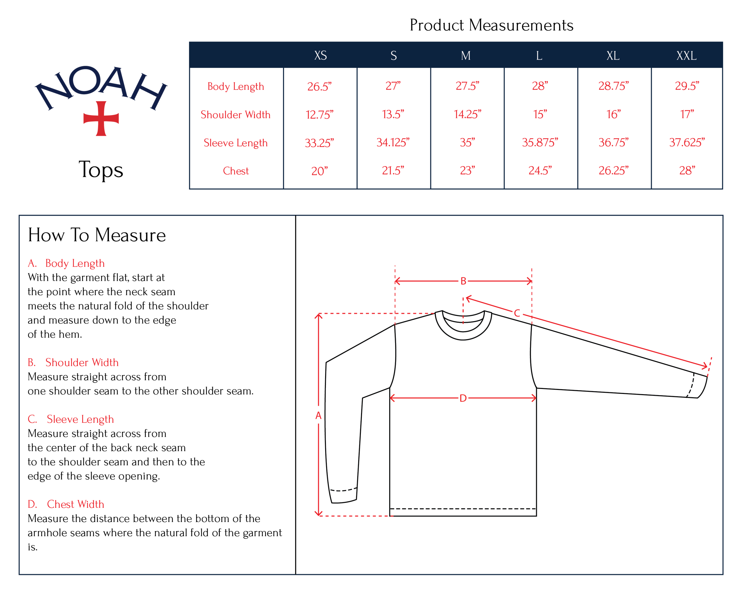 Made in Canada. 100% cotton 8 oz Practice Cloth. Felt appliqués on chest and back. Front yoke and interior elbow patches. Noah logo embroidery above cuff. Relaxed and slightly oversized fit. Josh is 6′ and wearing size MÂ