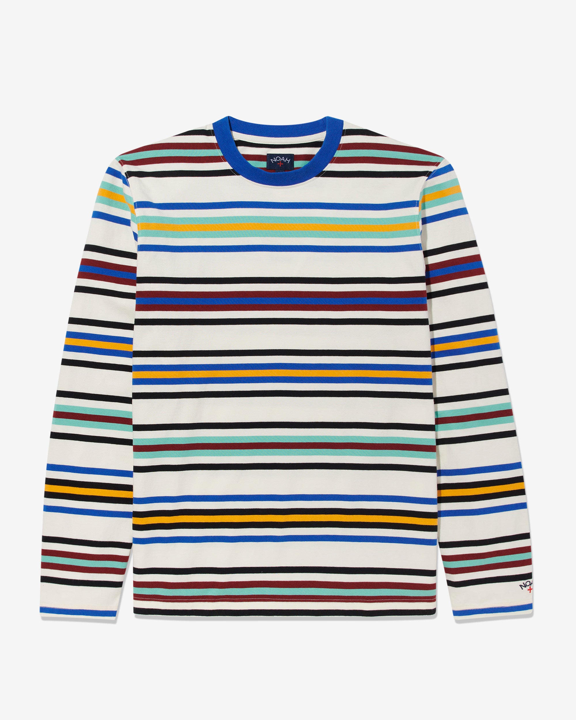 Made in Portugal. 100% cotton jersey with engineered stripes. Rib knit collar. Embroidered logo on sleeve. Returns on discounted items are accepted for store credit only