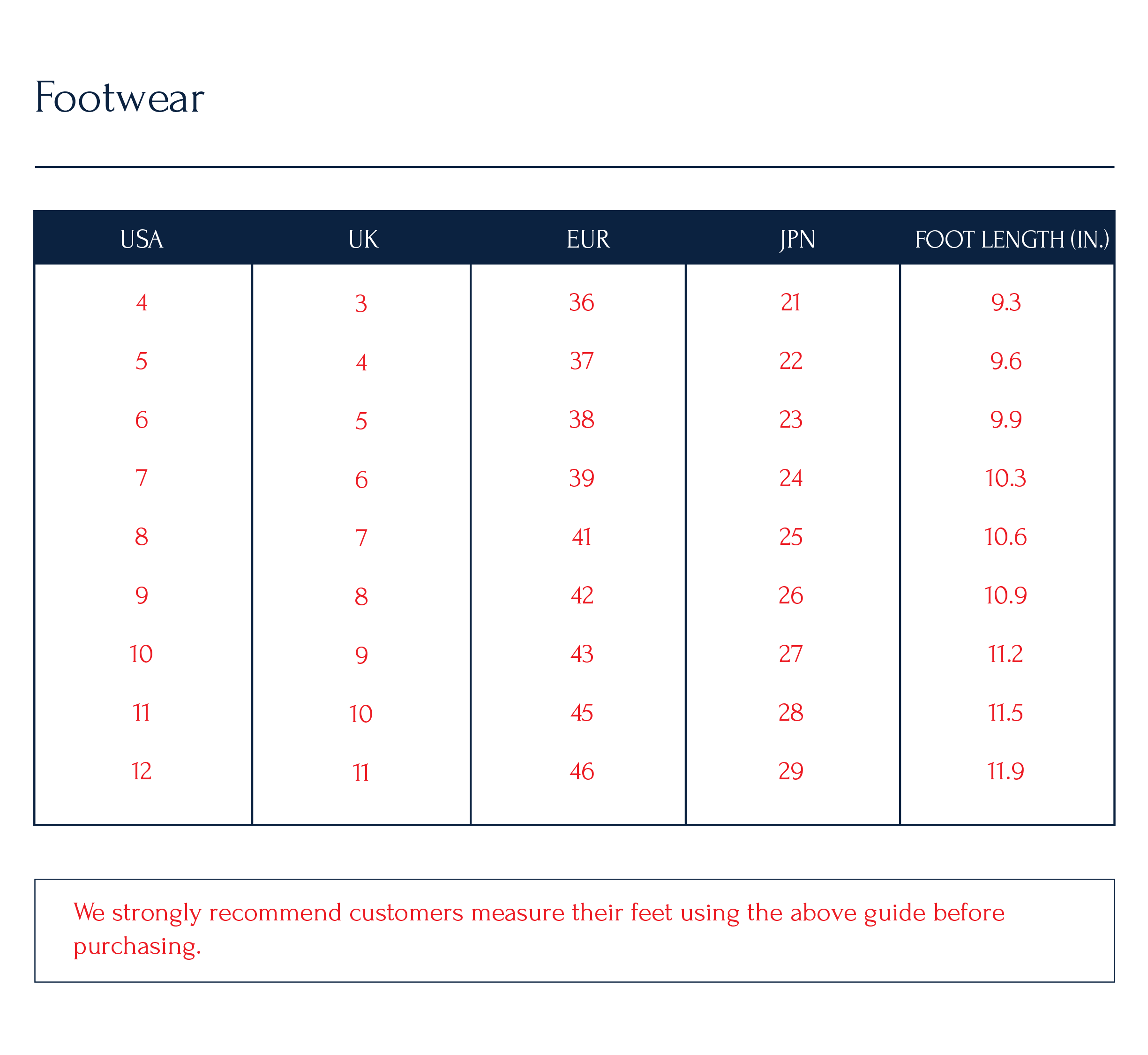 UK Sizes – if you wear a US size 9. buy a UK size 8.