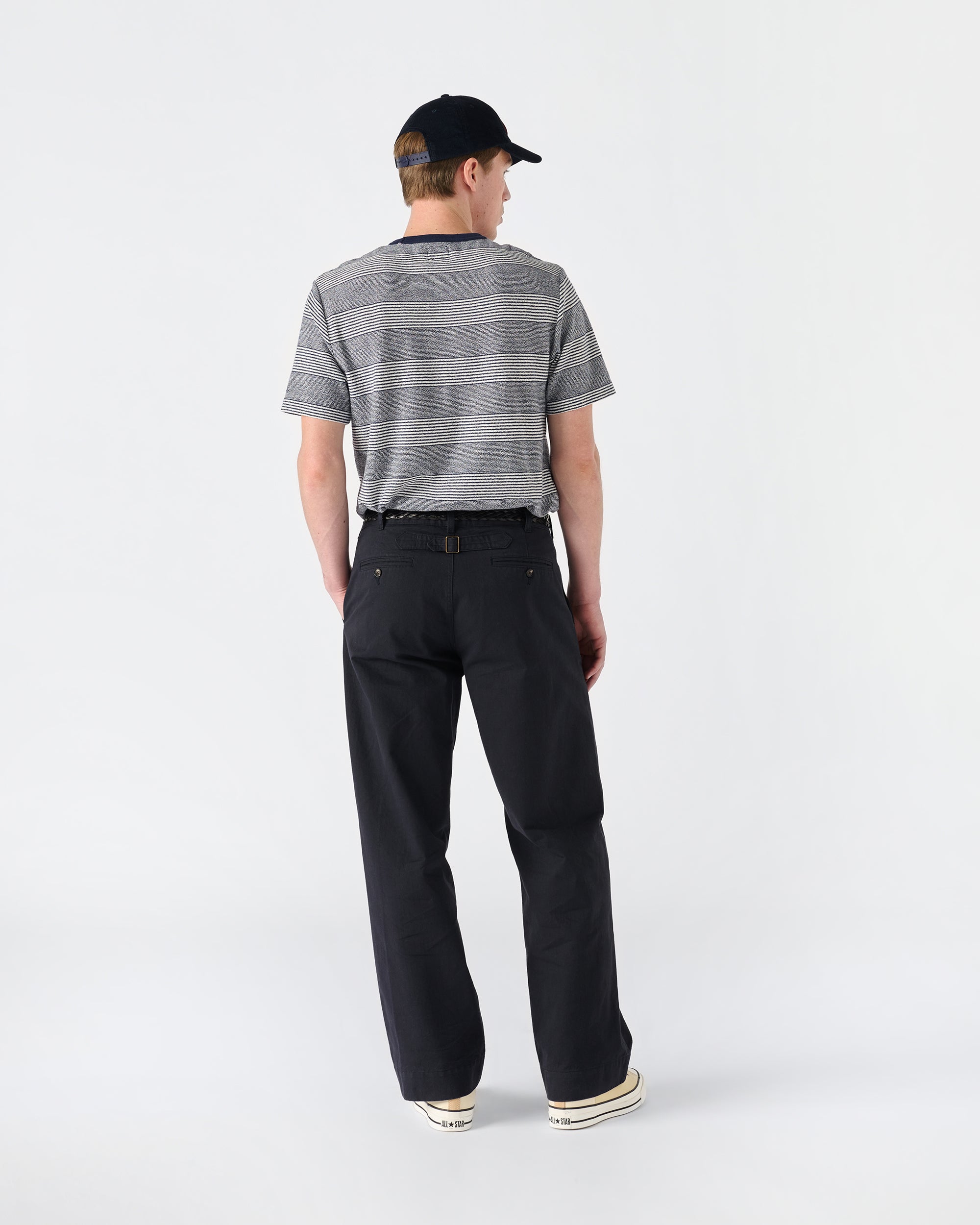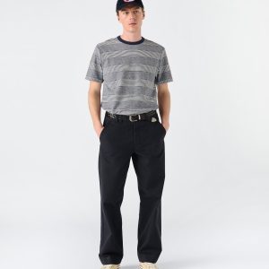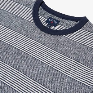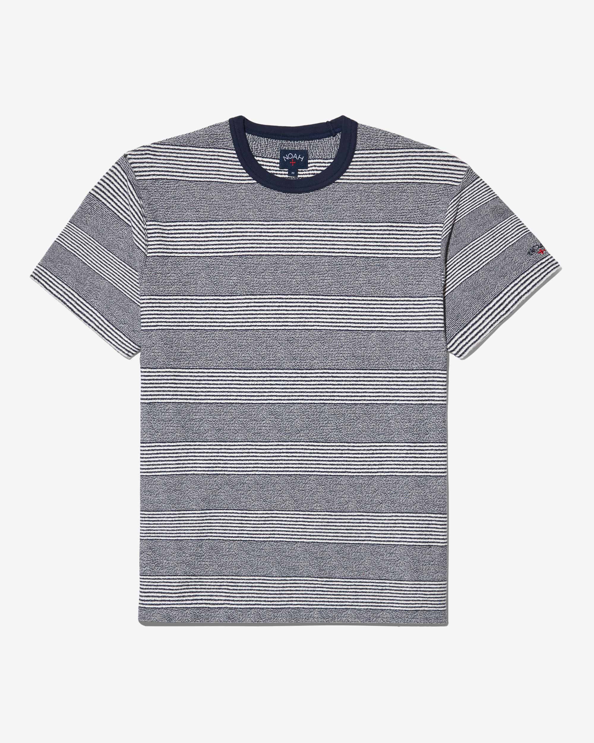 Made in Portugal. 100% cotton. Contrast collar. Custom jersey jacquard stripe. Embroidered logo above sleeve opening. Pero is 6’0 and wears a M