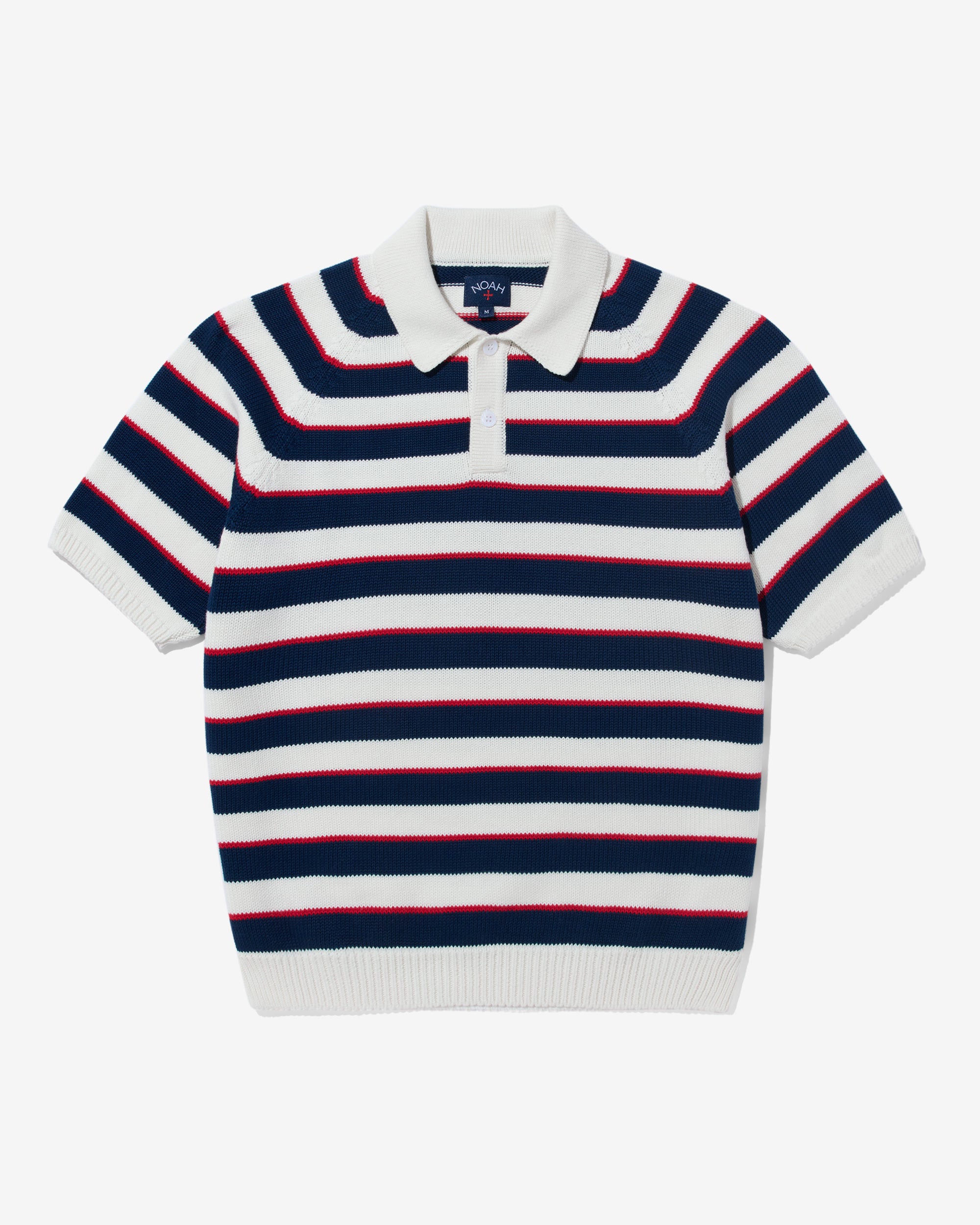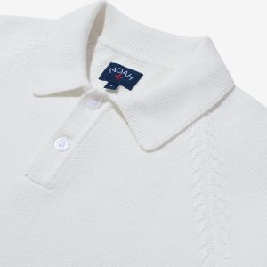 Made in Portugal. 100% Organic cotton. Two-button placket with polo collar. Ribbed hem and sleeve openings. Fully-fashioned