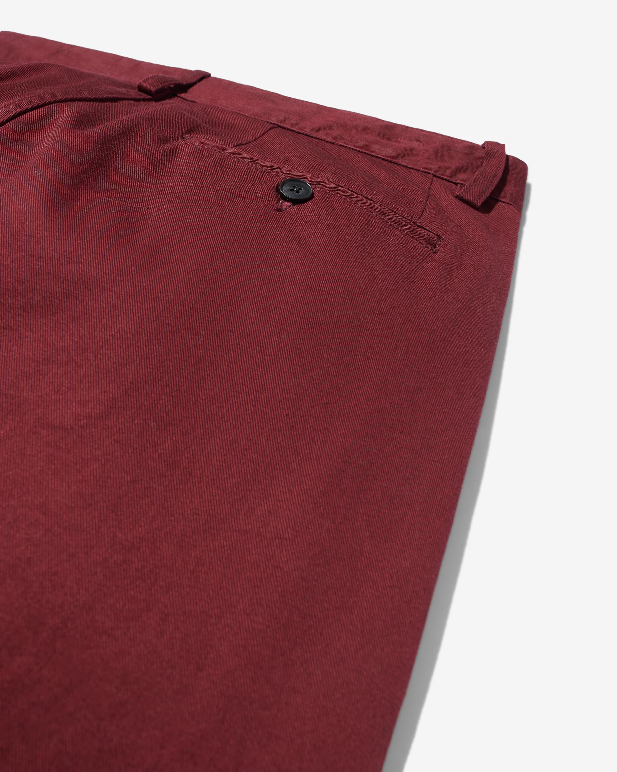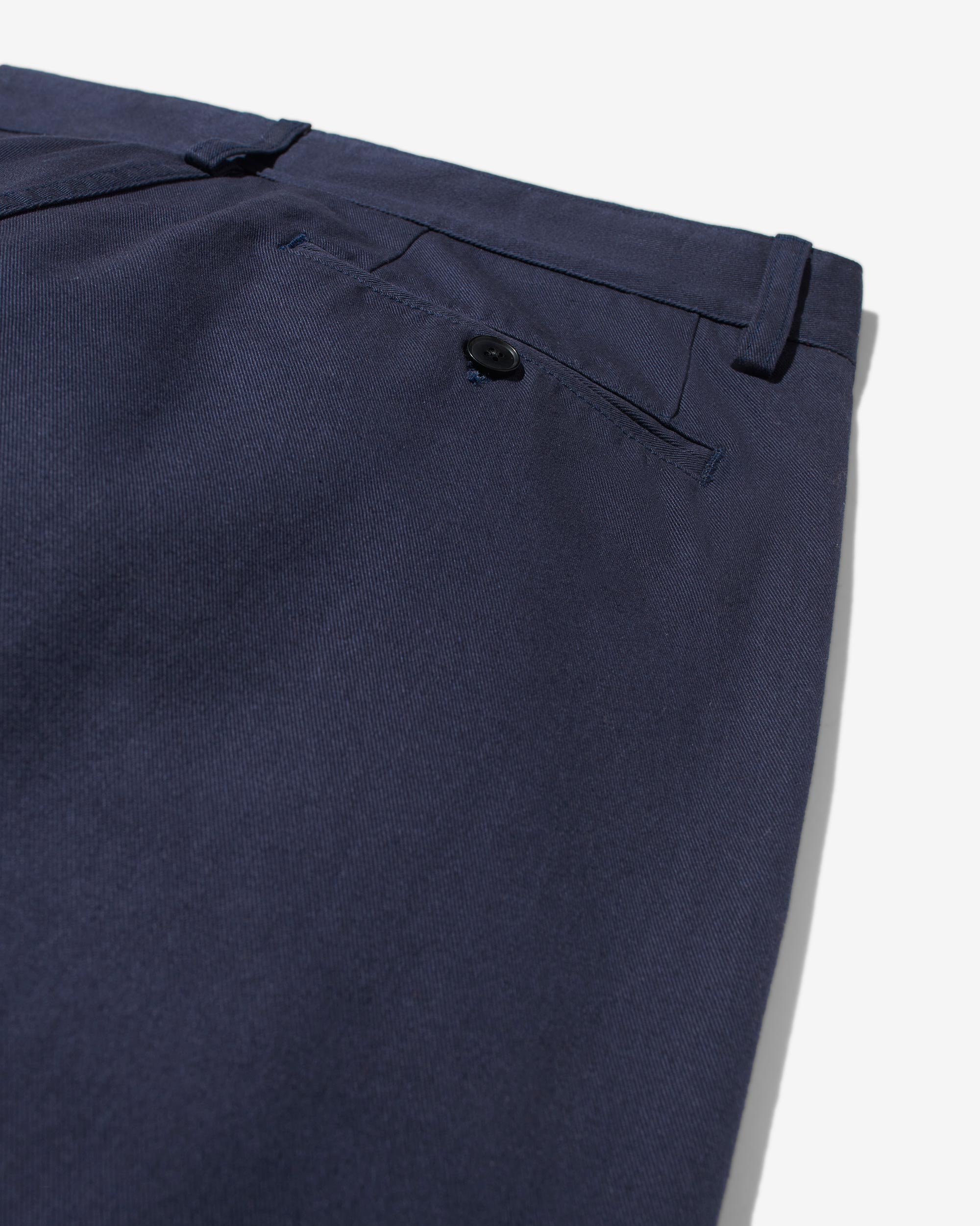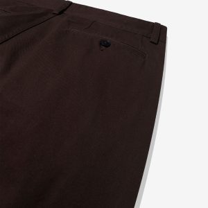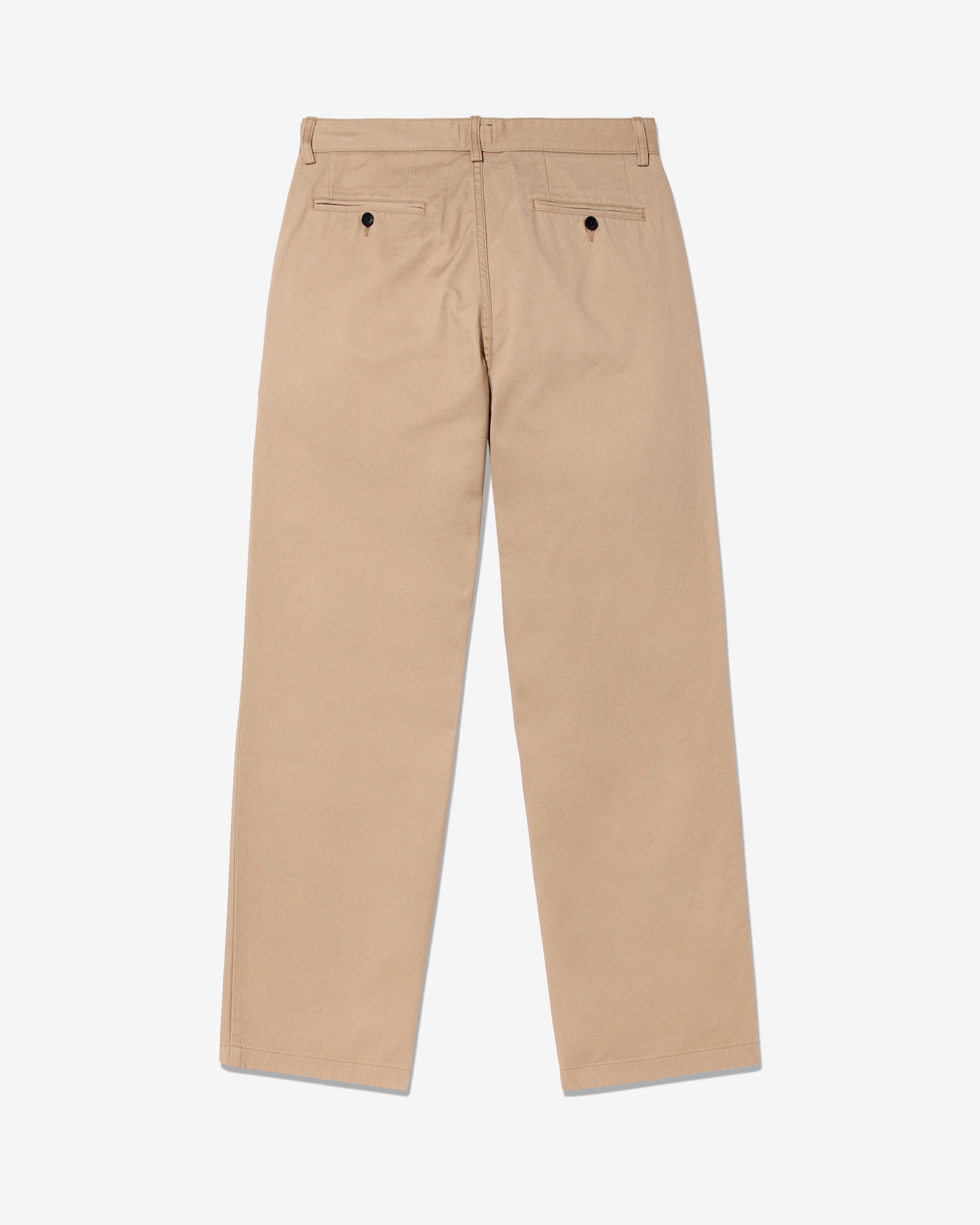 Made in Portugal. 100% cotton twill. Double-pleated with zip-fly and button-closure. Side seam front pockets and besom back pockets with button closure. Nile is 6’2 and wearing size 32