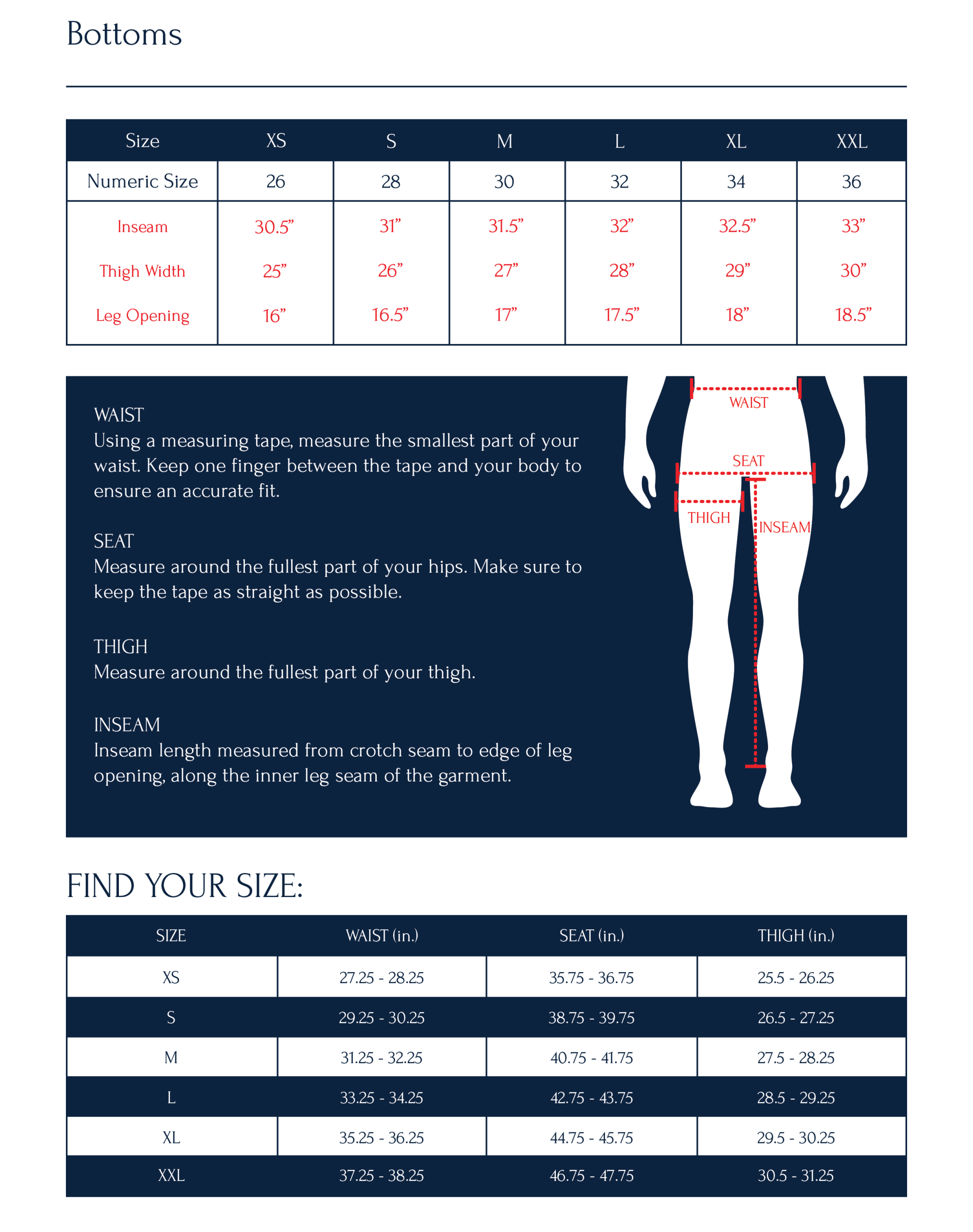 | Size | 26, 28, 30, 32, 34, 36 |