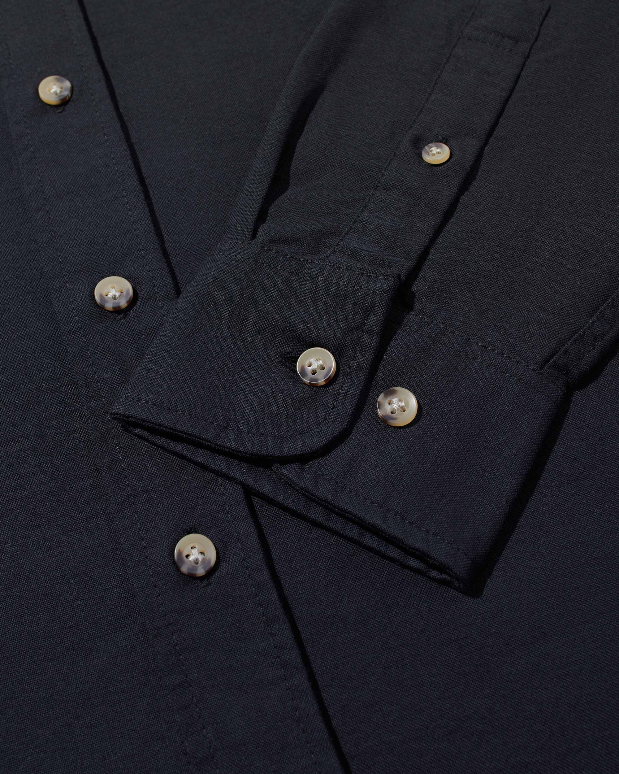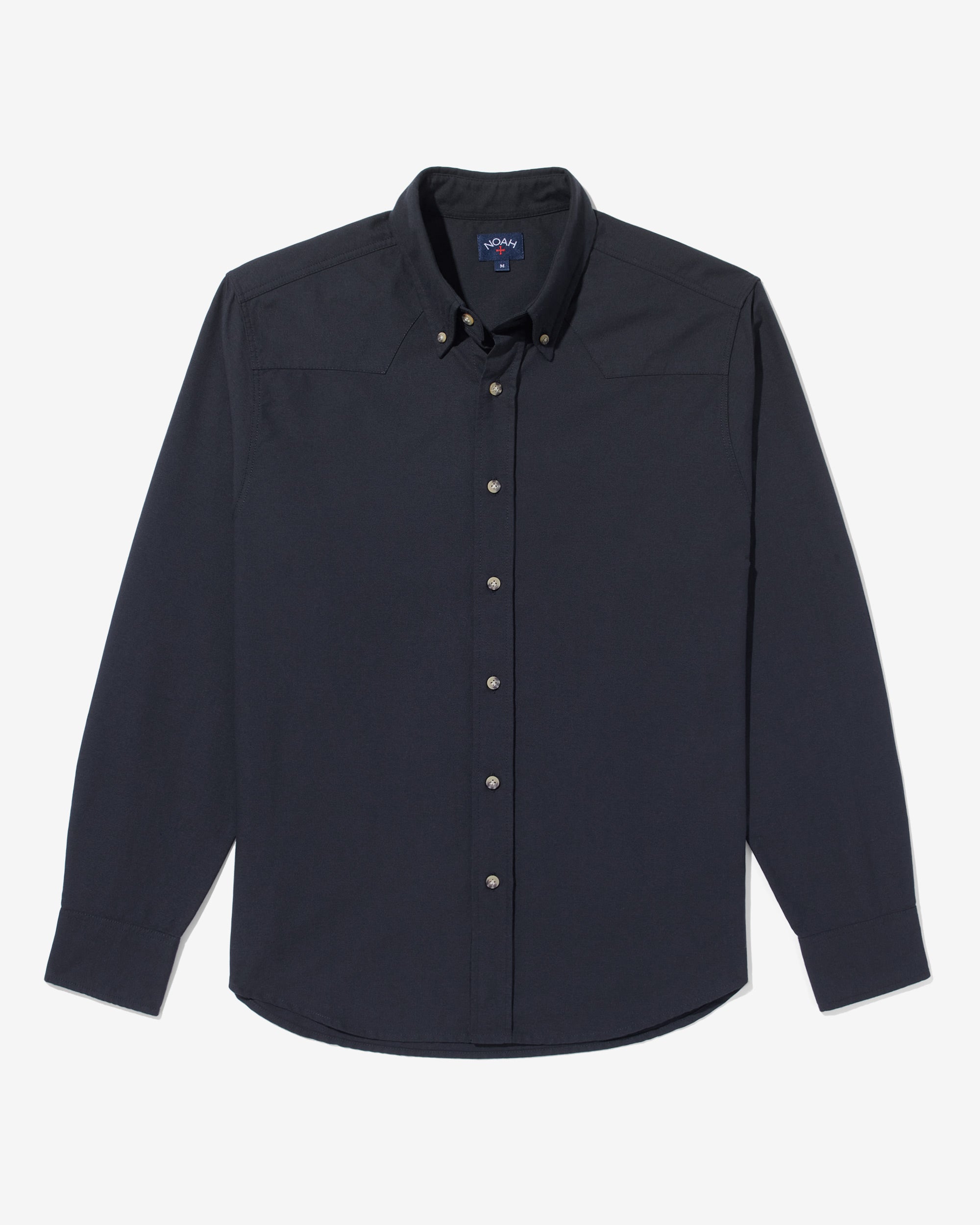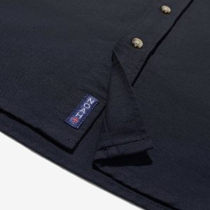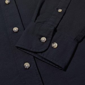 - Full-button closure with button down collar