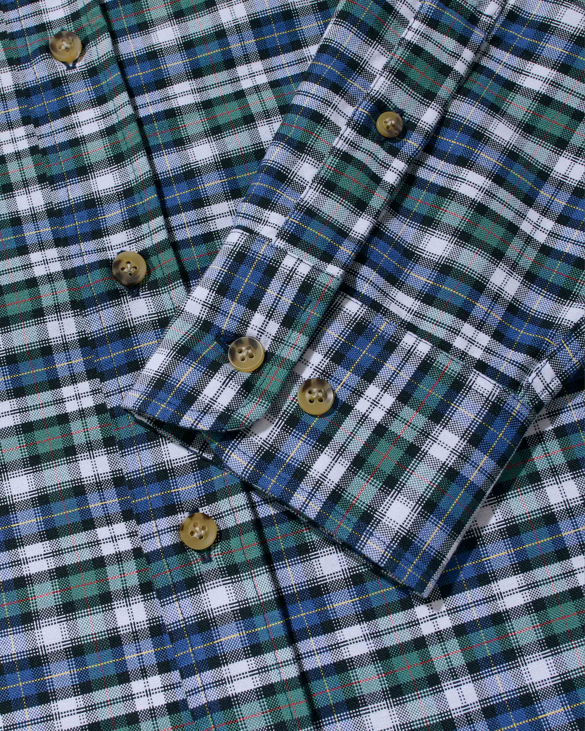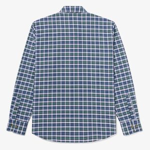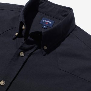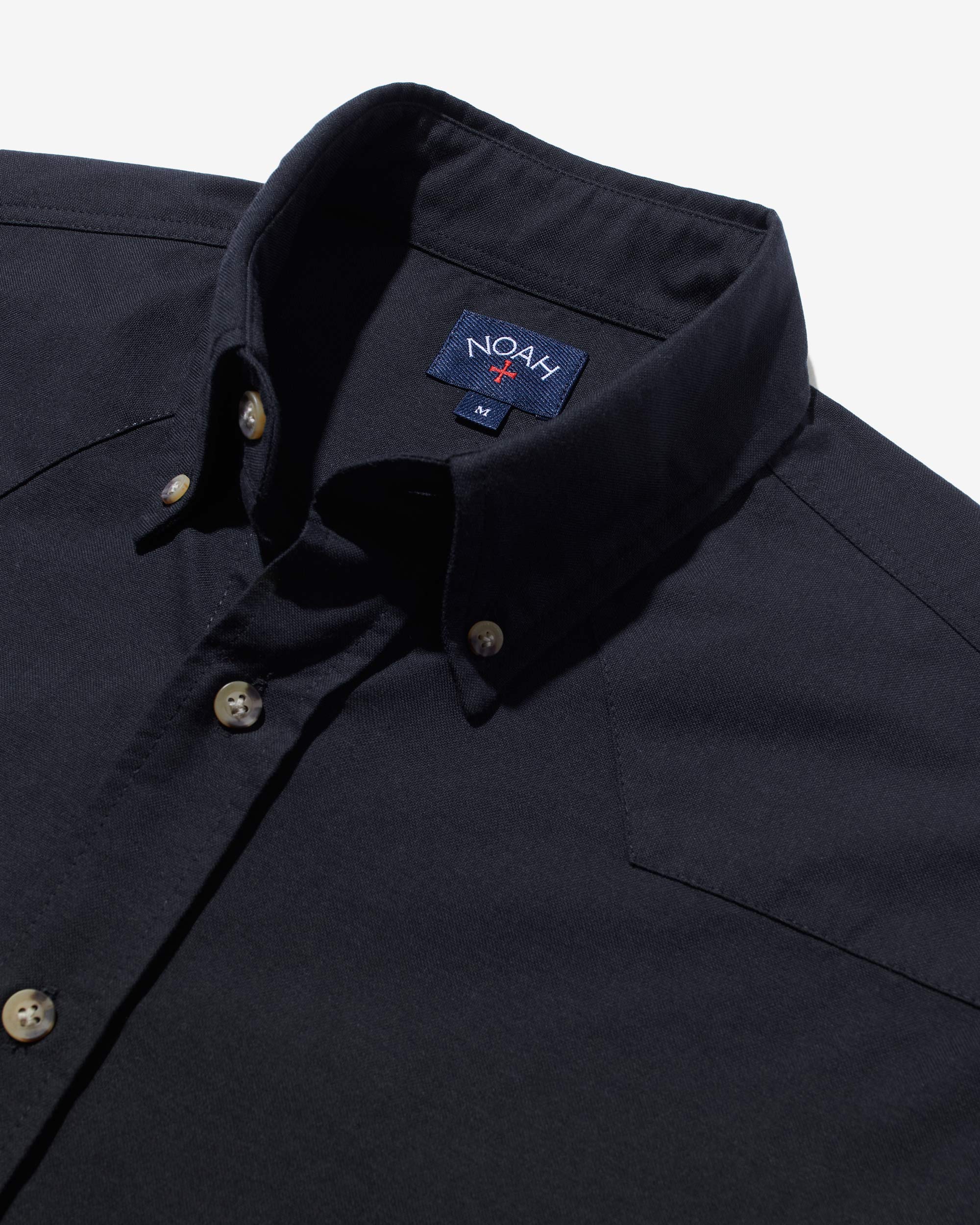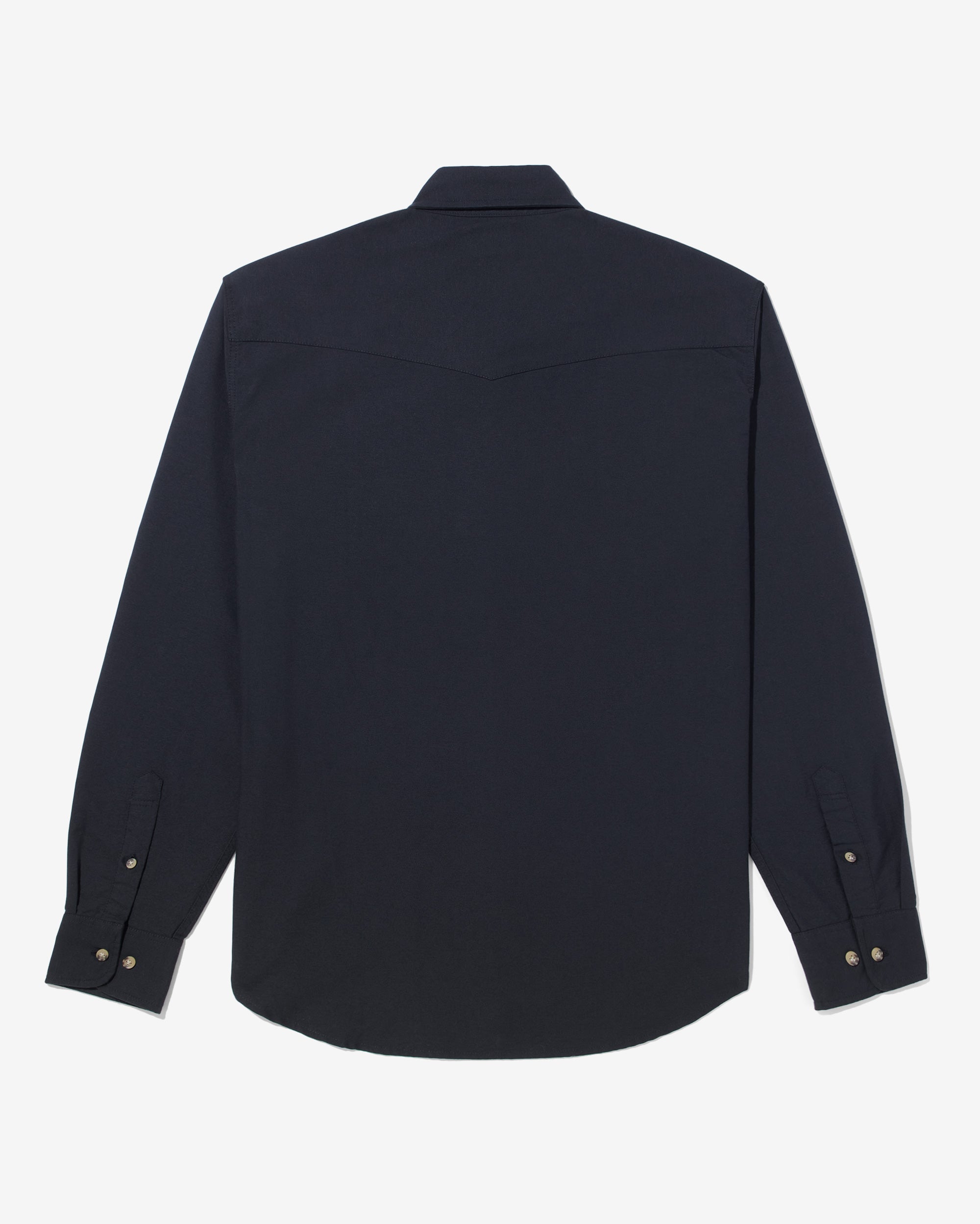 - Full-button closure with button down collar